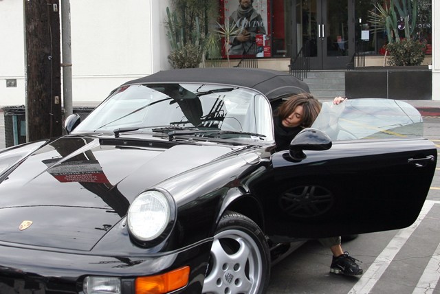 The Italian Queen ran errands in a Porsche the other day. A Porsche is Jacek’s dream. Every time we drive by a Carrera it’s like he has to rub one out. Too bad for him, he’s not dating George Clooney. But these days Elisabetta Canalis is living large.