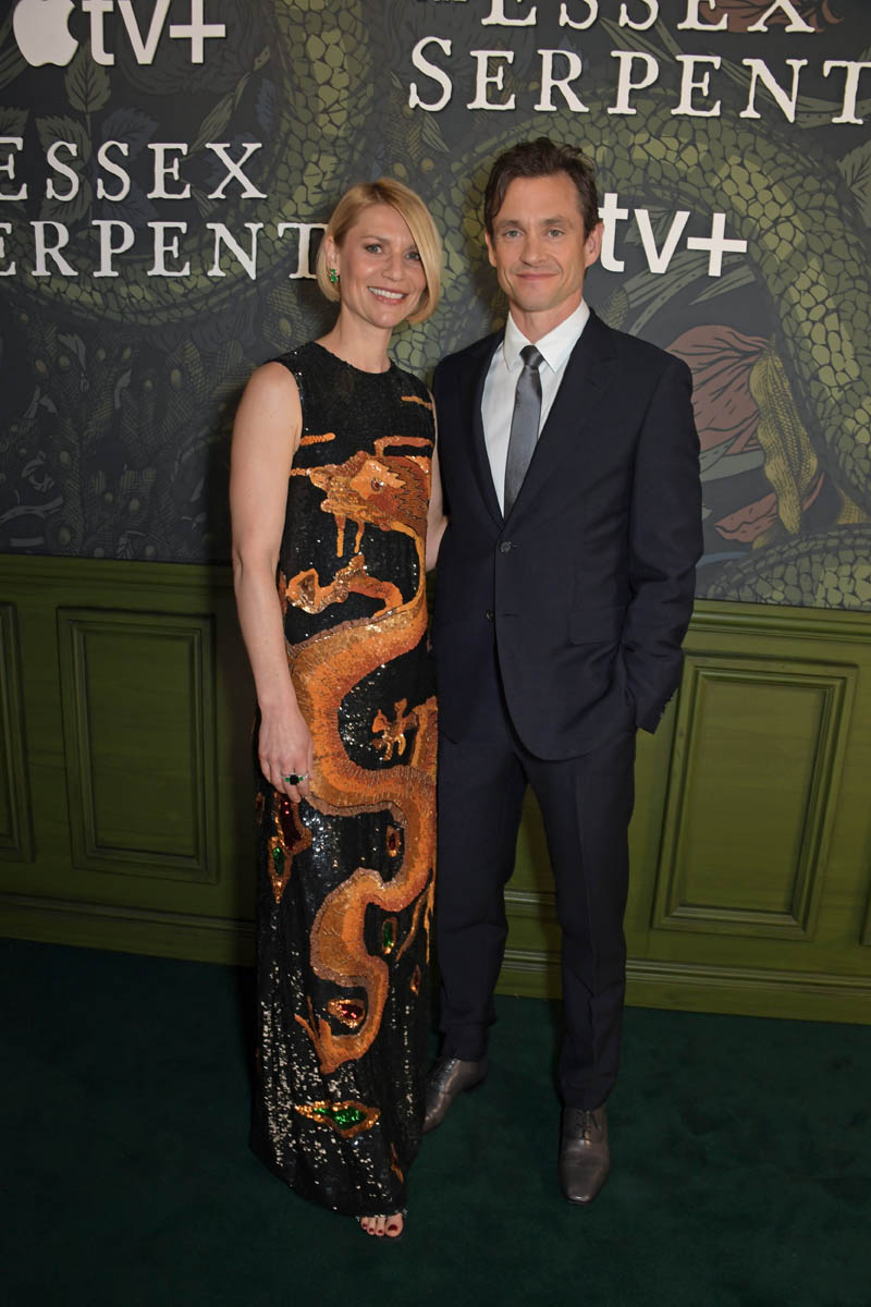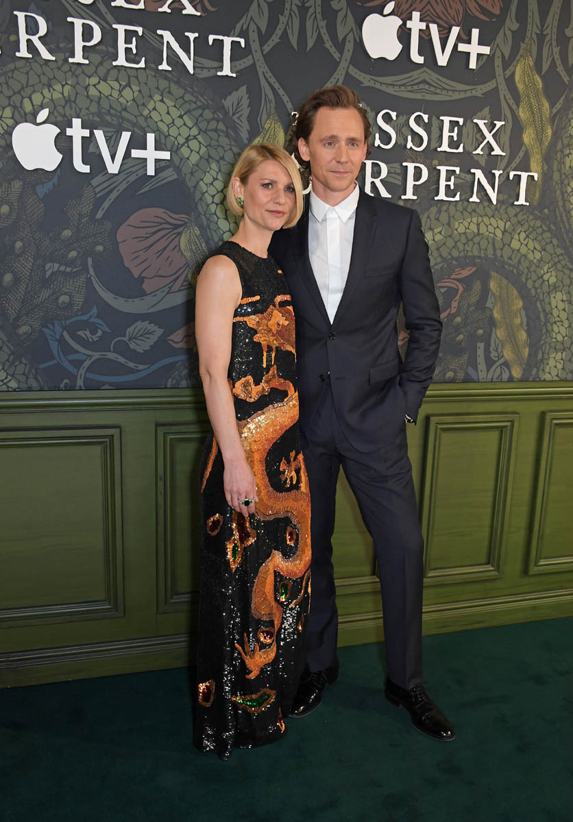 The Essex Serpent, the period drama starring Tom Hiddleston and Claire Danes and based on Sarah Perry’s novel, drops on Apple TV+ on May 13. That’s just a couple weeks away, and the premiere was held yesterday. It’s one of those events where everyone showed up dressed for a different event. I do like Claire Danes’s Valentino snake dress a lot, very appropriate given the subject of the show. She, however, looks wildly overdressed, though Hiddleston is closest in fanciness to her among people involved with the show, but her husband, Hugh Dancy, is the only man who put on a tie.