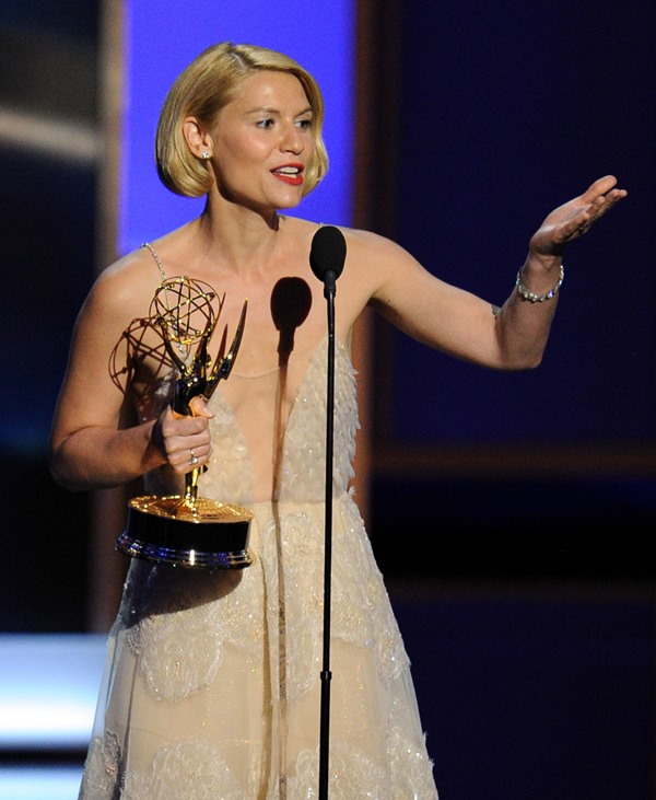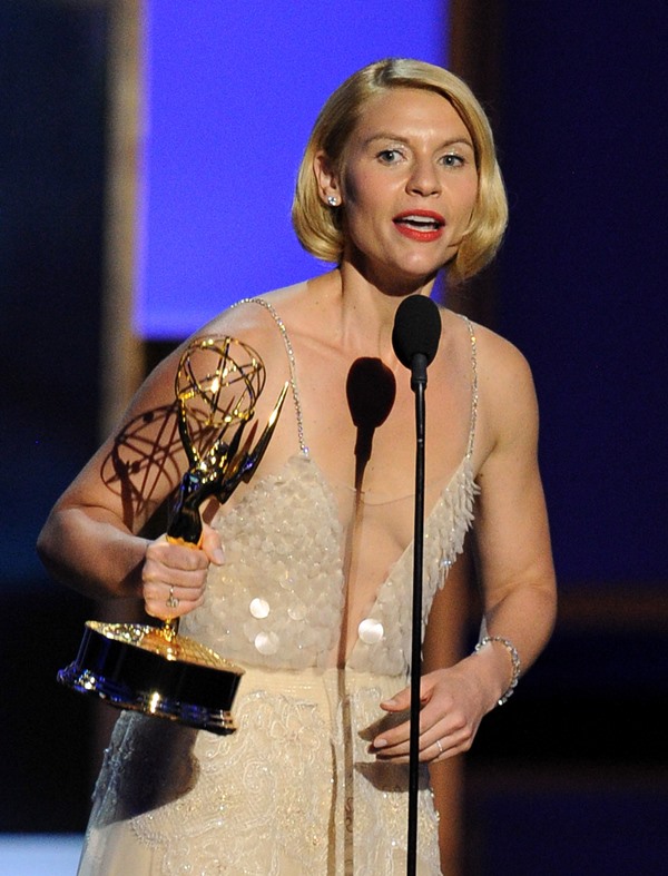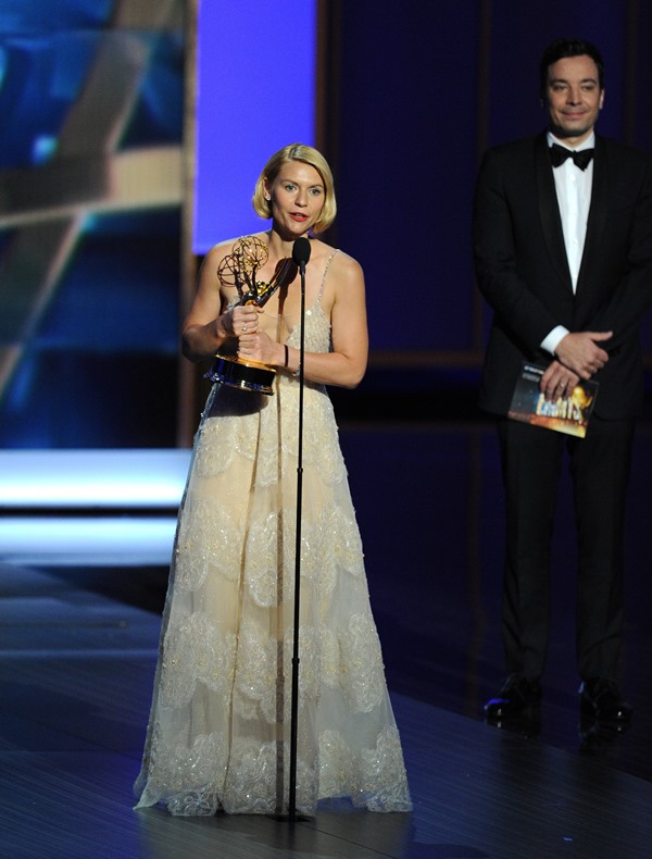 It’s partly her own doing, I think. Had she showed up just on her own as Claire Danes, then she would have just been Claire Danes and the hair and the tan and that dress, which is not getting enough criticism, would have been judged on their own.