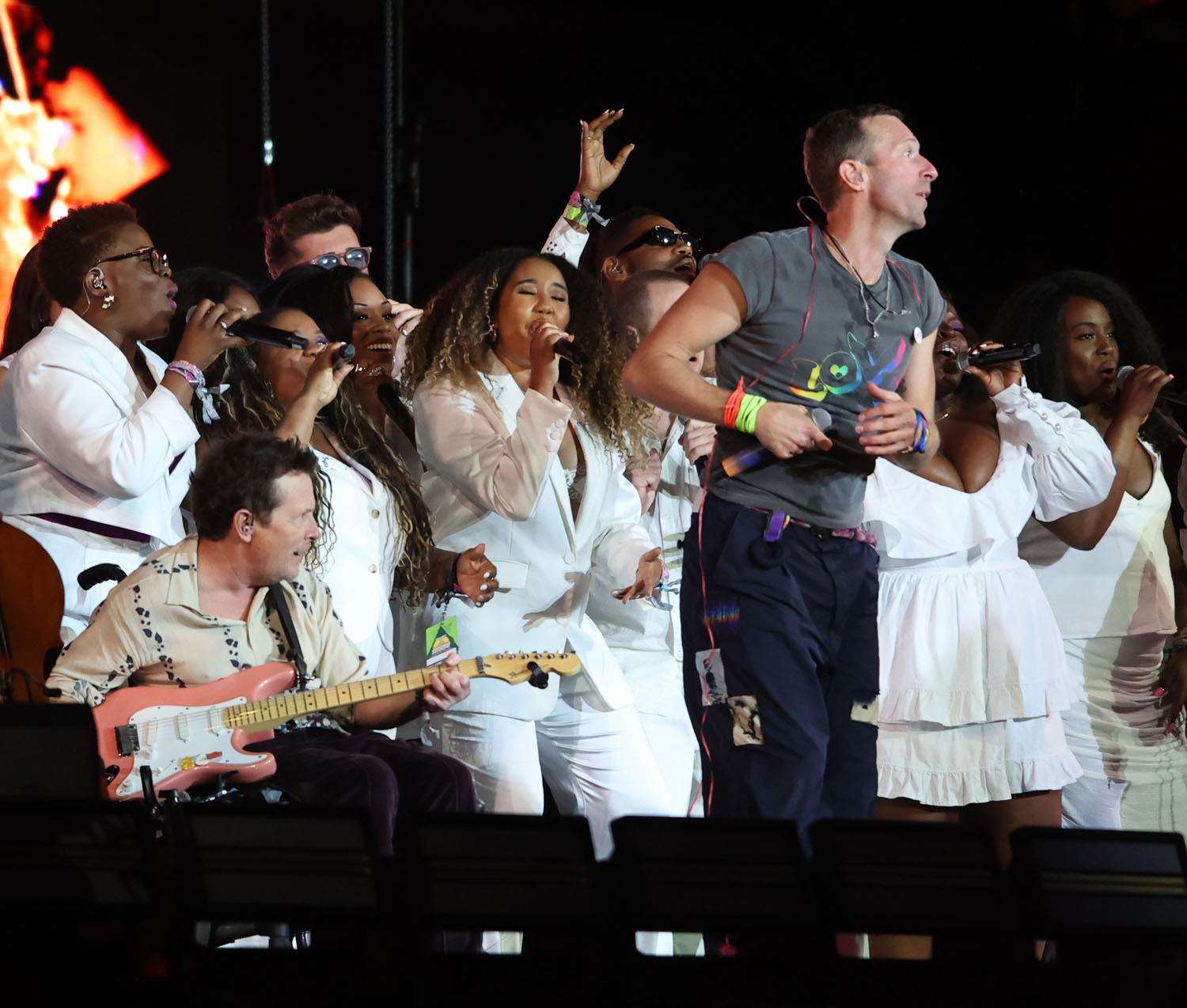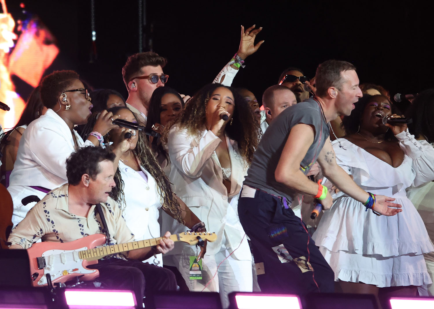 There was, however, a special guest on stage with Coldplay at the end of the show for “Fix You”: Michael J Fox. This is the band’s big power ballad and if you haven’t already, read The Ringer’s defence of the song, that it “deserves a better legacy”. I think there are a lot of reasons why people dump on Coldplay – partly because it’s been a loooong time since they’ve put out music that is as good as their early work, and partly because there are some who consider them cheeseballs, but I also wonder whether or not, specifically where “Fix You” is concerned, it’s the Gwyneth Paltrow connection. Chris Martin wrote the song to comfort her after her dad died – another thing on her long list of brags, LOL.