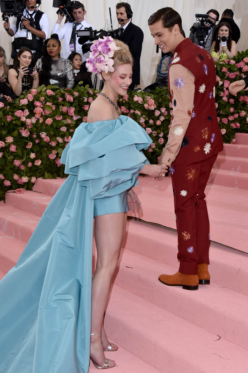 I didn’t stutter on that title. Obviously there are other couples tonight who killed it style-wise – more than usual, actually – and we’ll get to all of them. But the reason that Cole Sprouse and Lili Reinhart seem like the establishment here even though they’re early in their 20s and only attending the Met Gala for the second year is, well, they kind of are camp, in the best way possible.