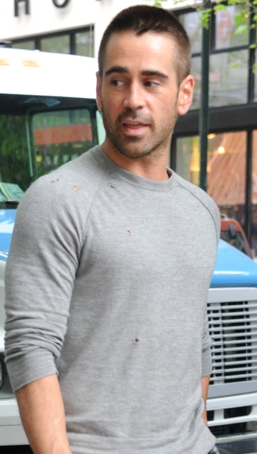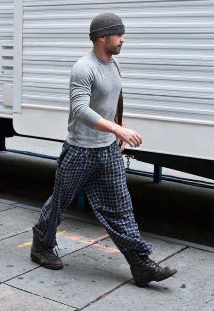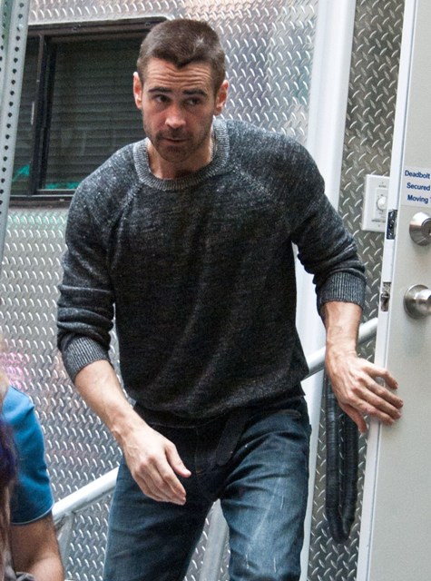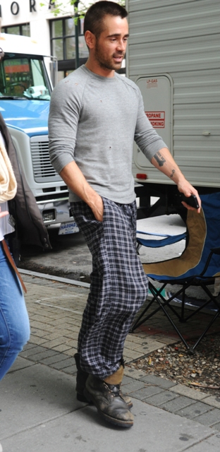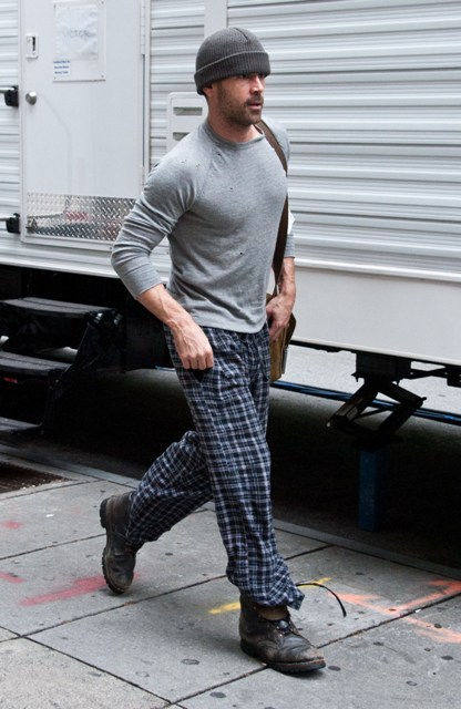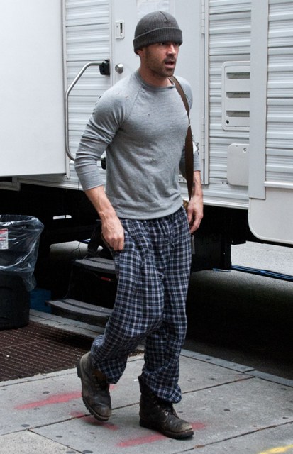 Here's Colin Farrell in pyjamas on the set of his new film Dead Man Down in Philadelphia.