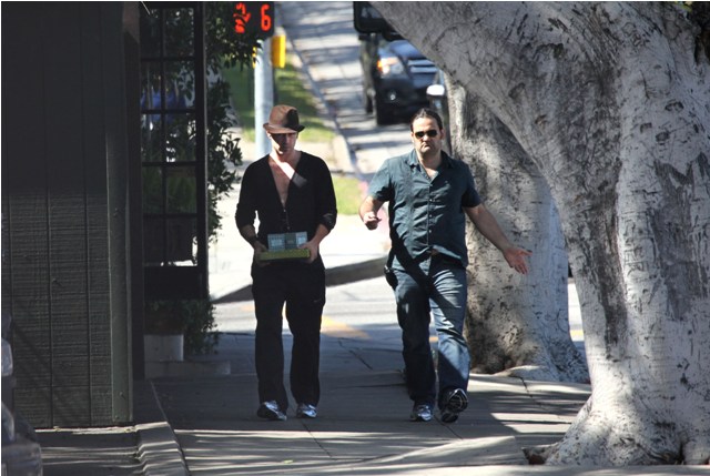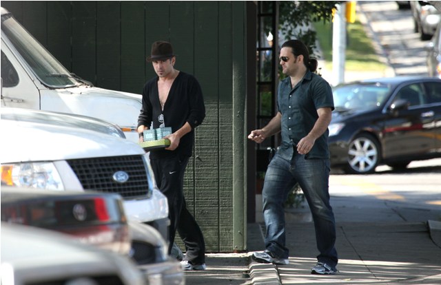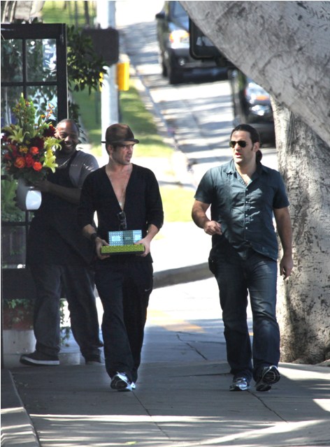 You hit up a flower shoppe yesterday in Los Feliz for some gift boxes with a friend while Alicja is back in Poland for the Polish Film Festival. But... couldn’t you have at least thrown on a tee shirt under there? Or a beater tank? I’m all for casual, and I certainly know that you, you live according to your own vibe, and I love you for it, but I’m having a hard time looking at you with the bare chest underneath the cardigan and that chain and then the track pants because this, this is not simply dirty clothes or grubby grunge. This is, like, I think it’s on purpose. And worse still, I think... this is... a little...