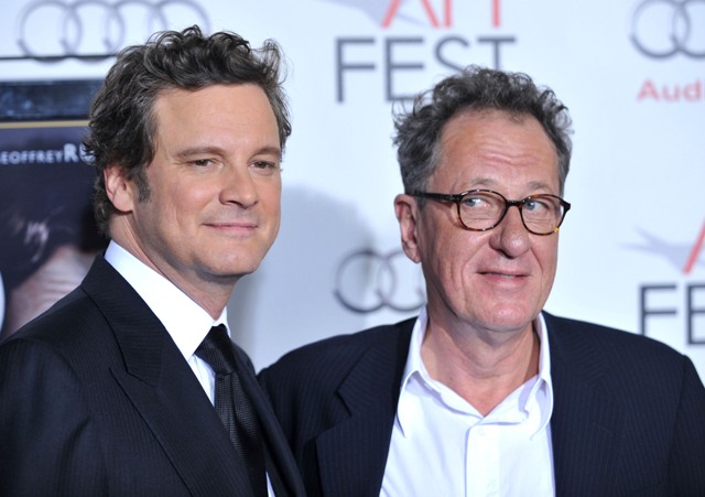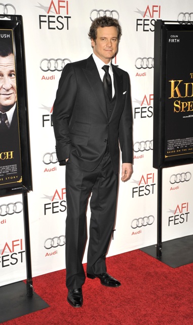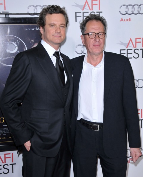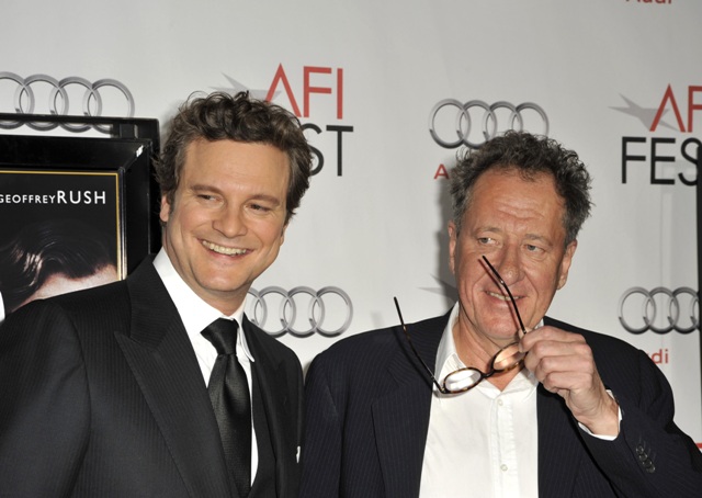 Colin Firth and Geoffrey Rush attended the tribute Gala for The King’s Speech at the AFI Fest on Friday night, marking perhaps the official kickoff of the film’s campaign for Oscar. Many predict it’ll be George VI vs Mark Zuckerberg at the Kodak next year as The King’s Speech and The Social Network are said to be, at the moment, the two strongest candidates for Best Picture. But don’t forget to leave a slot open for True Grit.