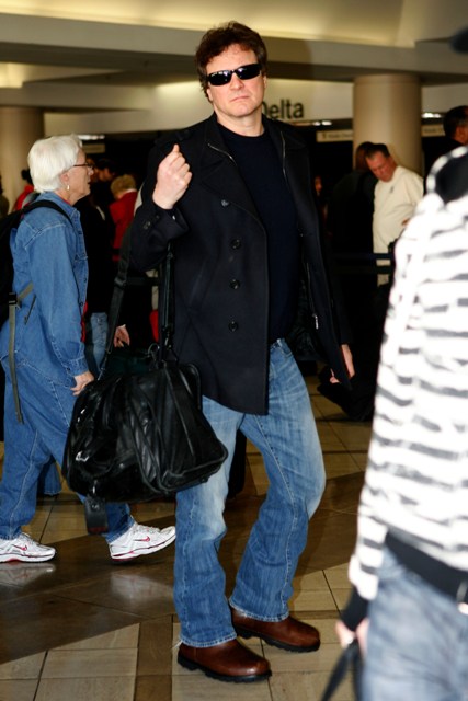 Here they are at LAX the other day – Colin and his wife Livia Giuggiolo. Know nothing about her but I can imagine. I can imagine she’s Italian and impossibly stylish. From the hair to the skin, her body, the leggings, the boots, the way some European woman have chic genetically coded into their DNA – bet your fake tits Livia is The One.