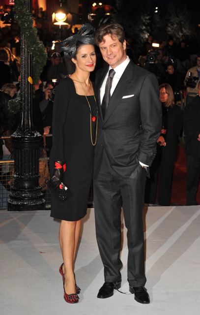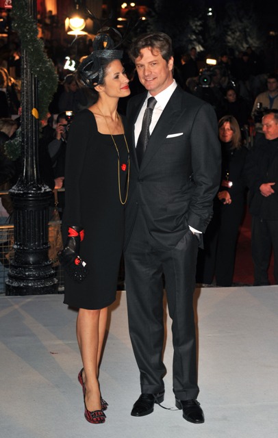 Tonight in London at the premiere of A Christmas Carol, here’s the always dashing Colin Firth alongside his equally elegant wife. A Christmas Carol is gunning for the holiday box office. So Colin has a hand in potentially commercial and critical successes this season. Of course A Single Man, for which he’s considered a heavy Oscar favourite, has to be where the primary focus is. Let Jim Carrey take care of Carol. He really doesn’t have much else to do these days.