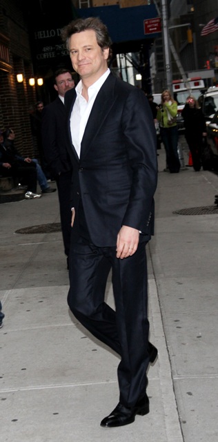 But it was Firth’s first time at The Late Show. He was, not surprisingly, totally delightful. Looked great, obviously, but it’s the way he speaks too. So erudite, so elegant, so intelligent, so quick, even Dave couldn’t help it, even Dave was charmed, and I swear he wanted to kiss his hand at the very end.