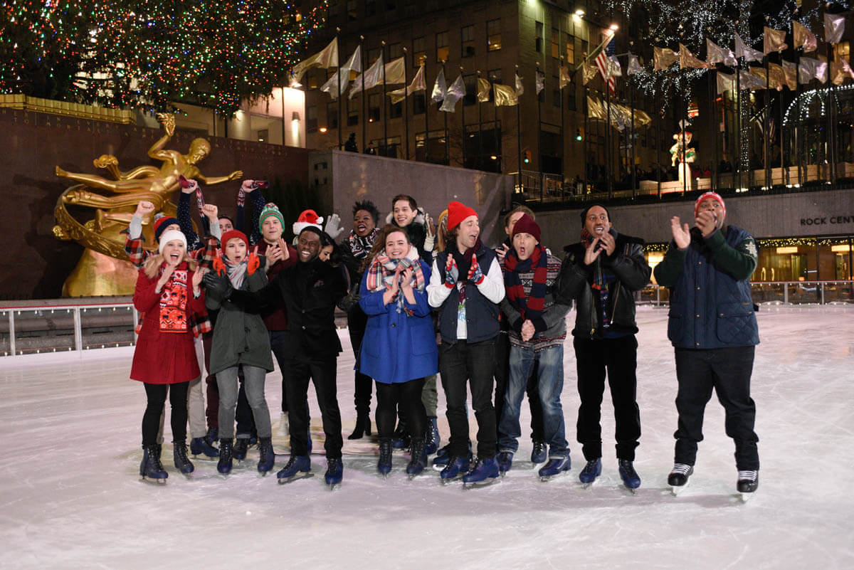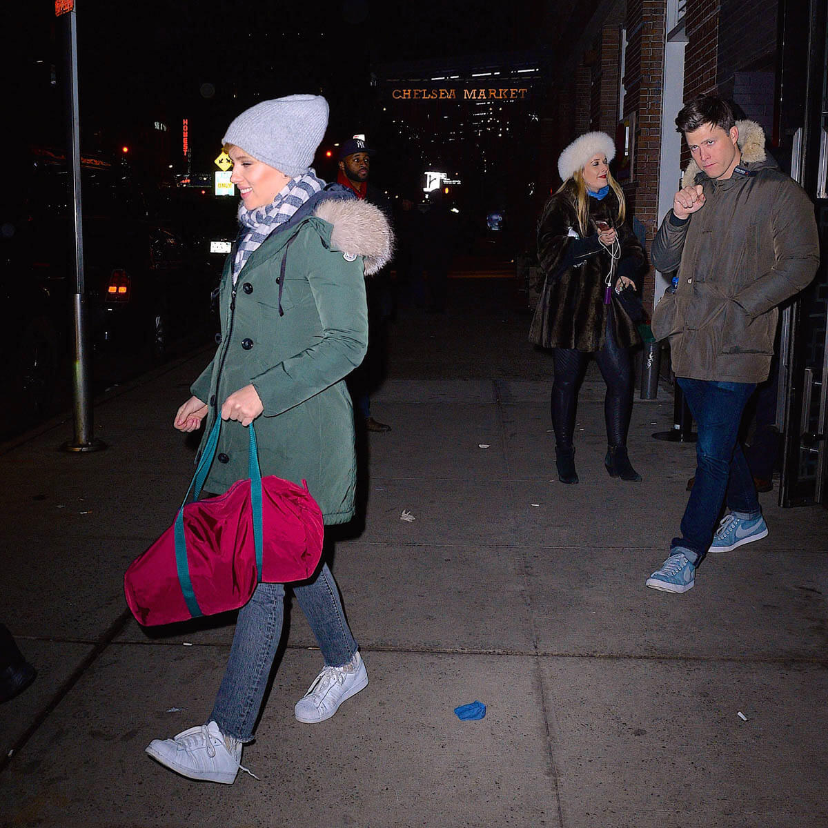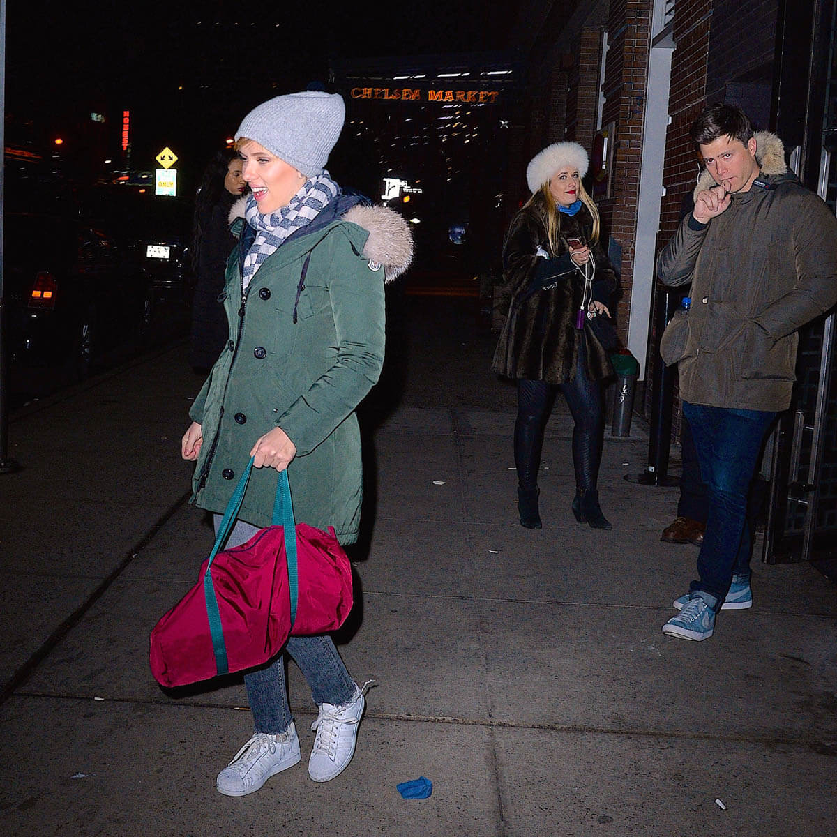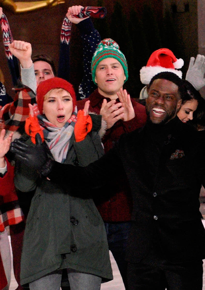 Scarlett Johansson showed up on the final 2017 episode of Saturday Night Live this weekend to play Ivanka Trump in the cold open. Afterward she joined cast members and host Kevin Hart on the Rockefeller Centre ice rink, standing beside her boyfriend Colin Jost. Everyone skated around as the credits rolled and ScarJost was seen holding hands on Michael Che’s Instastory: