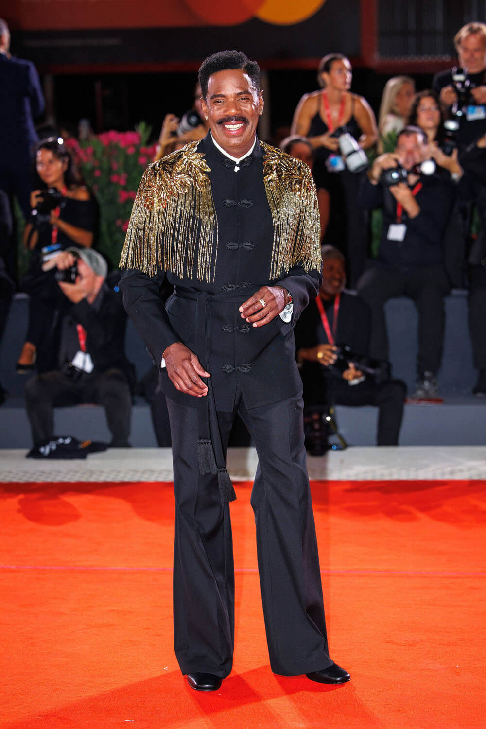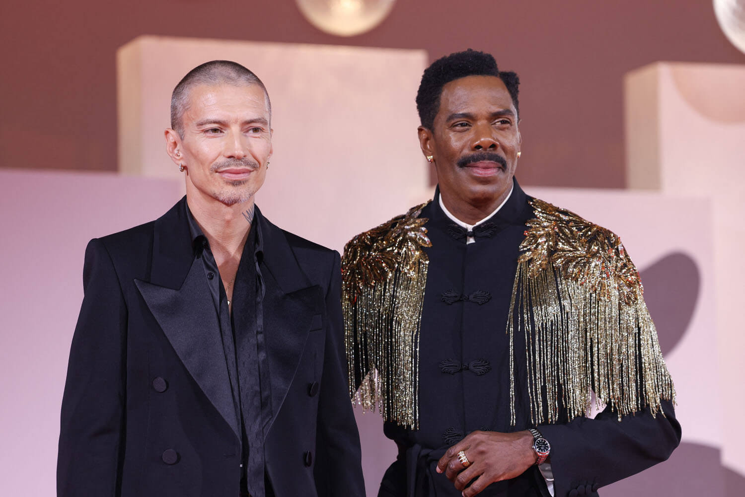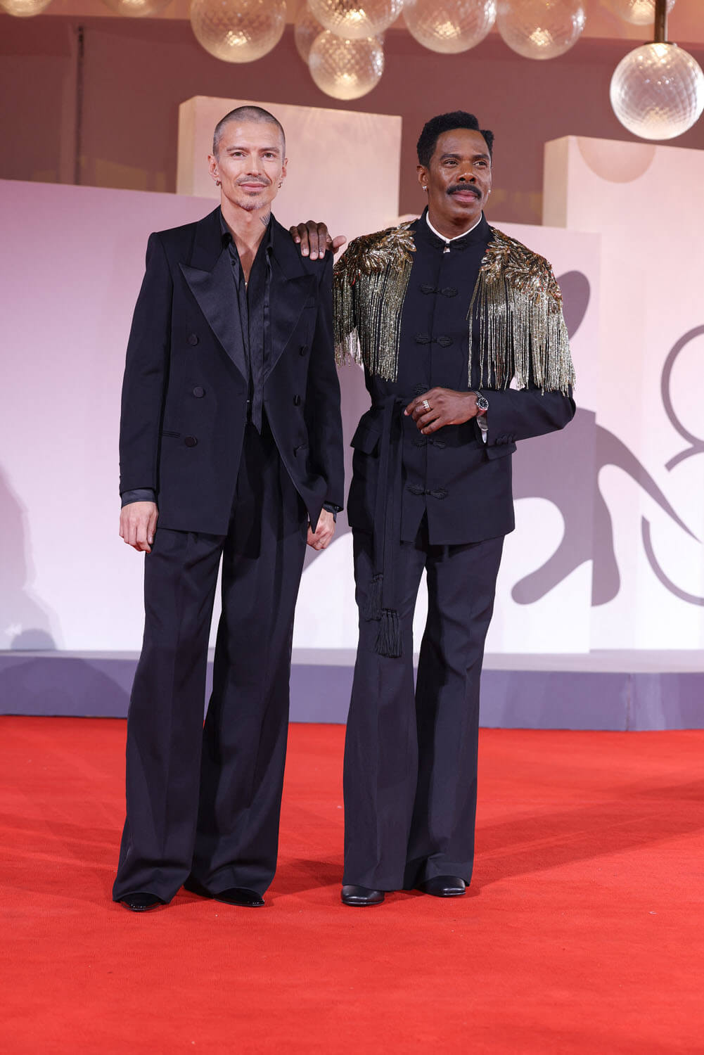 Anyway, Gus Van Sant’s new true crime film, Dead Man’s Wire, premiered at Venice last night, bringing out most of the cast, including Colman Domingo, accompanied by his husband, Raul Domingo. Colman showed up in custom Valentino with gold-bedecked fringe: