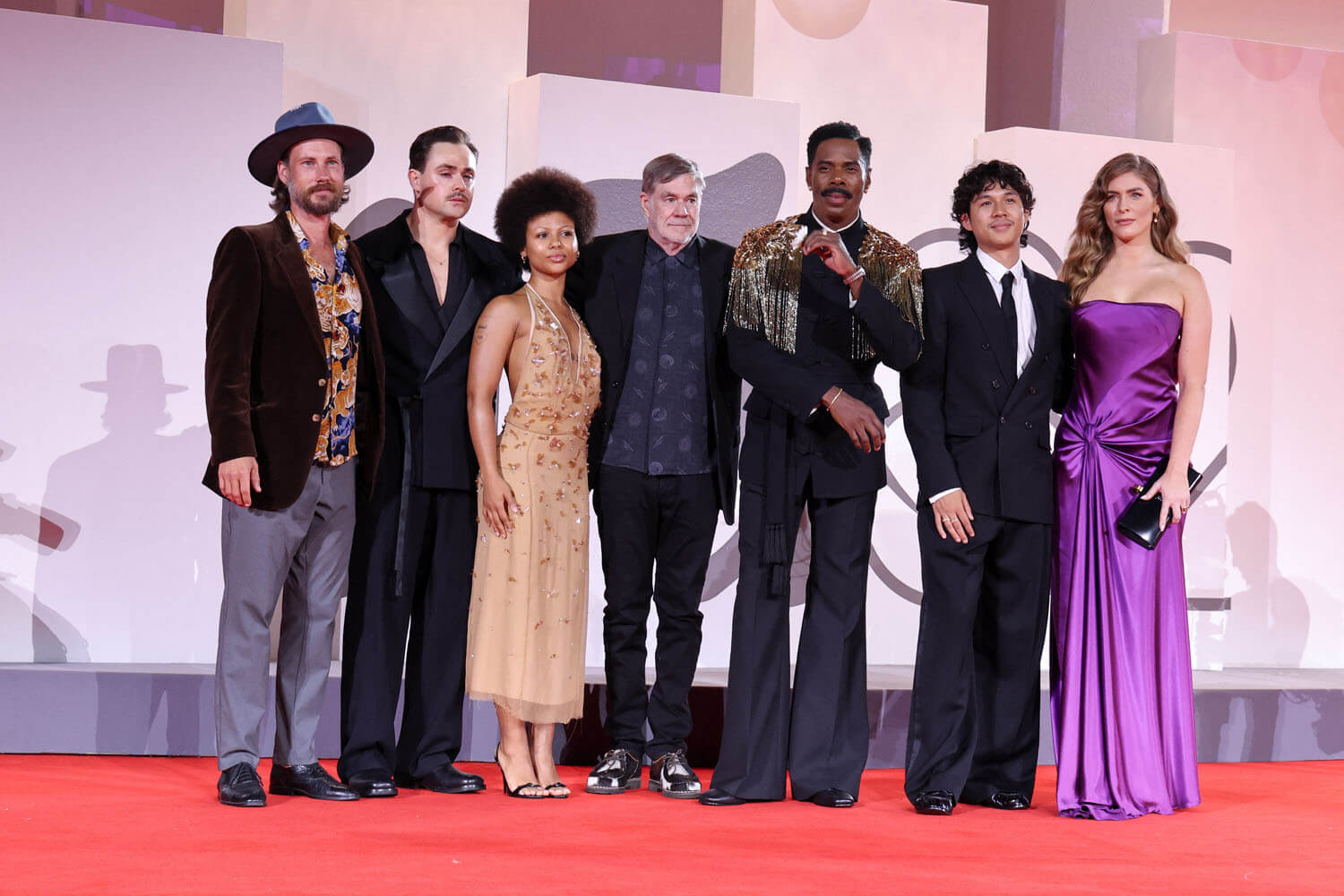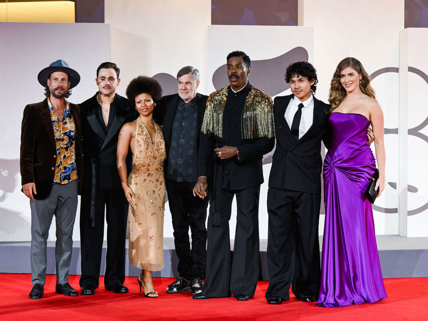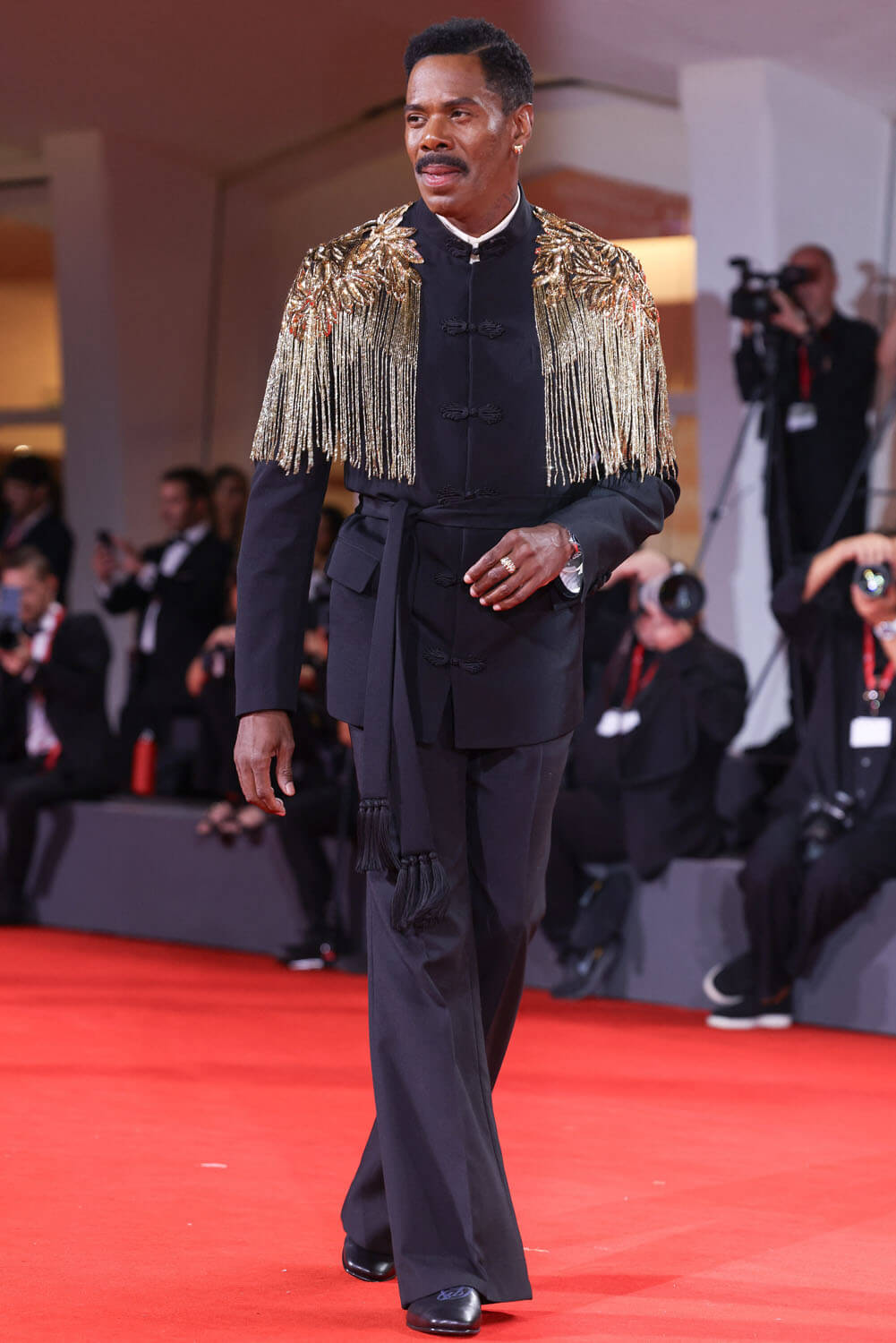 Anyway, Gus Van Sant’s new true crime film, Dead Man’s Wire, premiered at Venice last night, bringing out most of the cast, including Colman Domingo, accompanied by his husband, Raul Domingo. Colman showed up in custom Valentino with gold-bedecked fringe: