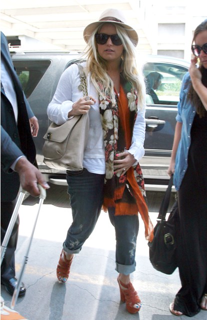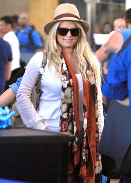 Anyway, check out Porny at LAX yesterday in boyfriend jeans and what are probably very expensive shoes that only she can turn into $50 massage parlour specials. Here’s what I will say about Jessica though – at least she isn’t so f-cking twatty she’d dare compare her upcoming wedding to that freeloader to the Royal Wedding which is what one of those Kardashian people did recently. As IF.