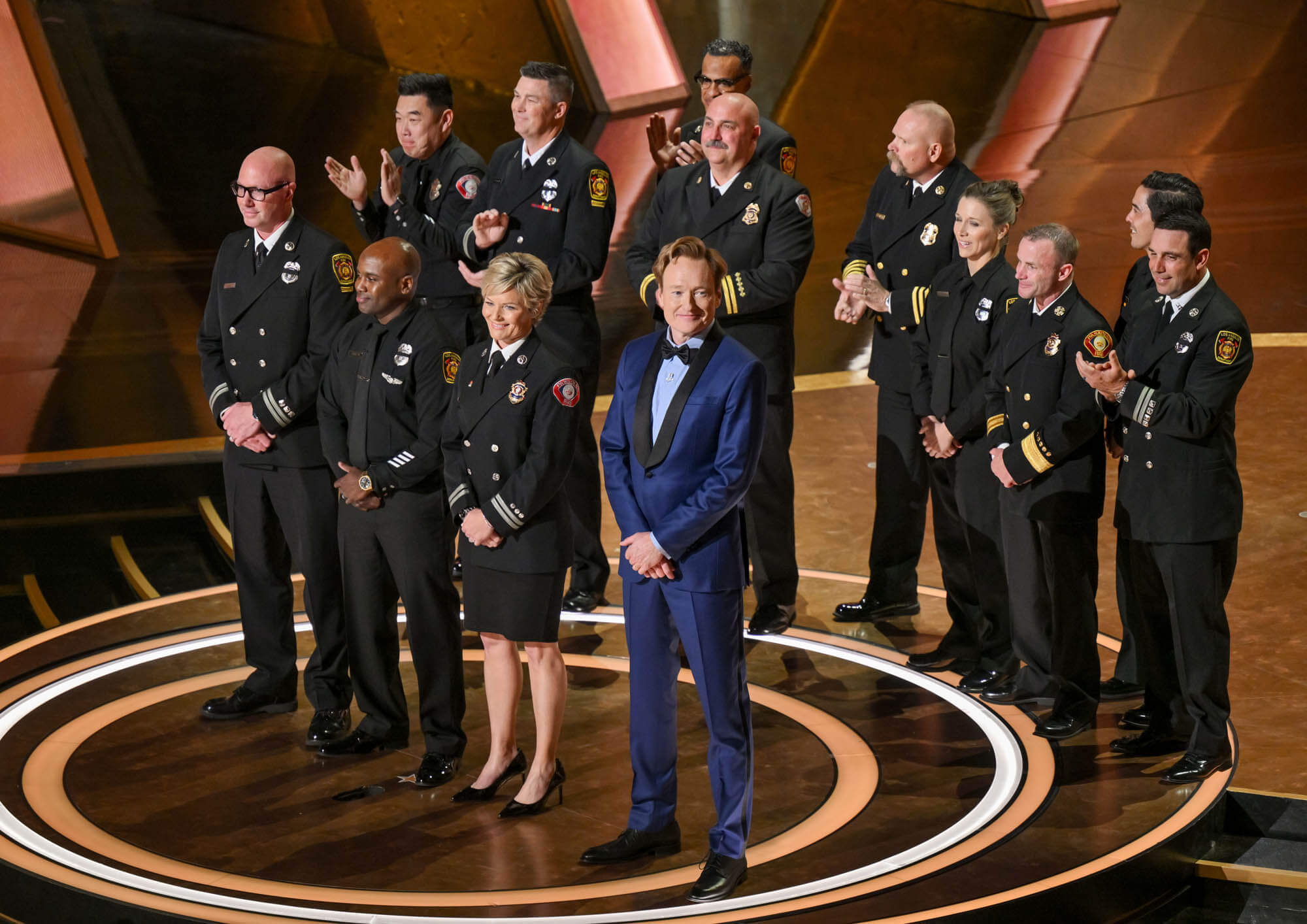 He also did a great bit with representatives from the Los Angeles Fire Department, having them deliver jokes alongside Conan.