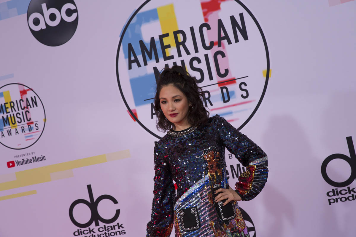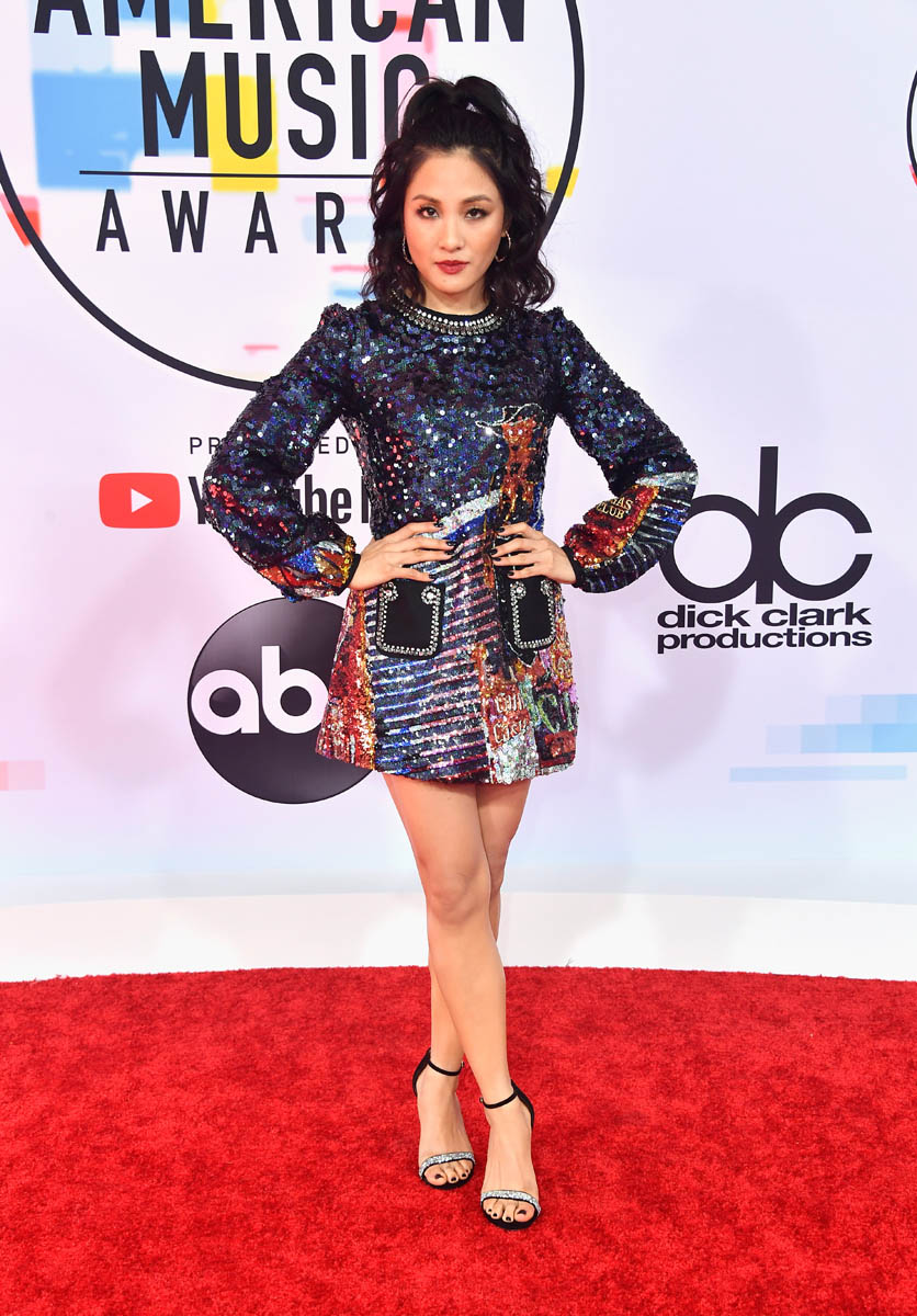My personal favourite outfit at the American Music Awards last night: Constance Wu. Totally my jam – high collar, long, pretty sleeves, not tight to the body, lots and lots of leg…and the colour pattern of those sequins, MY GOD. Also her skin looked flawless.