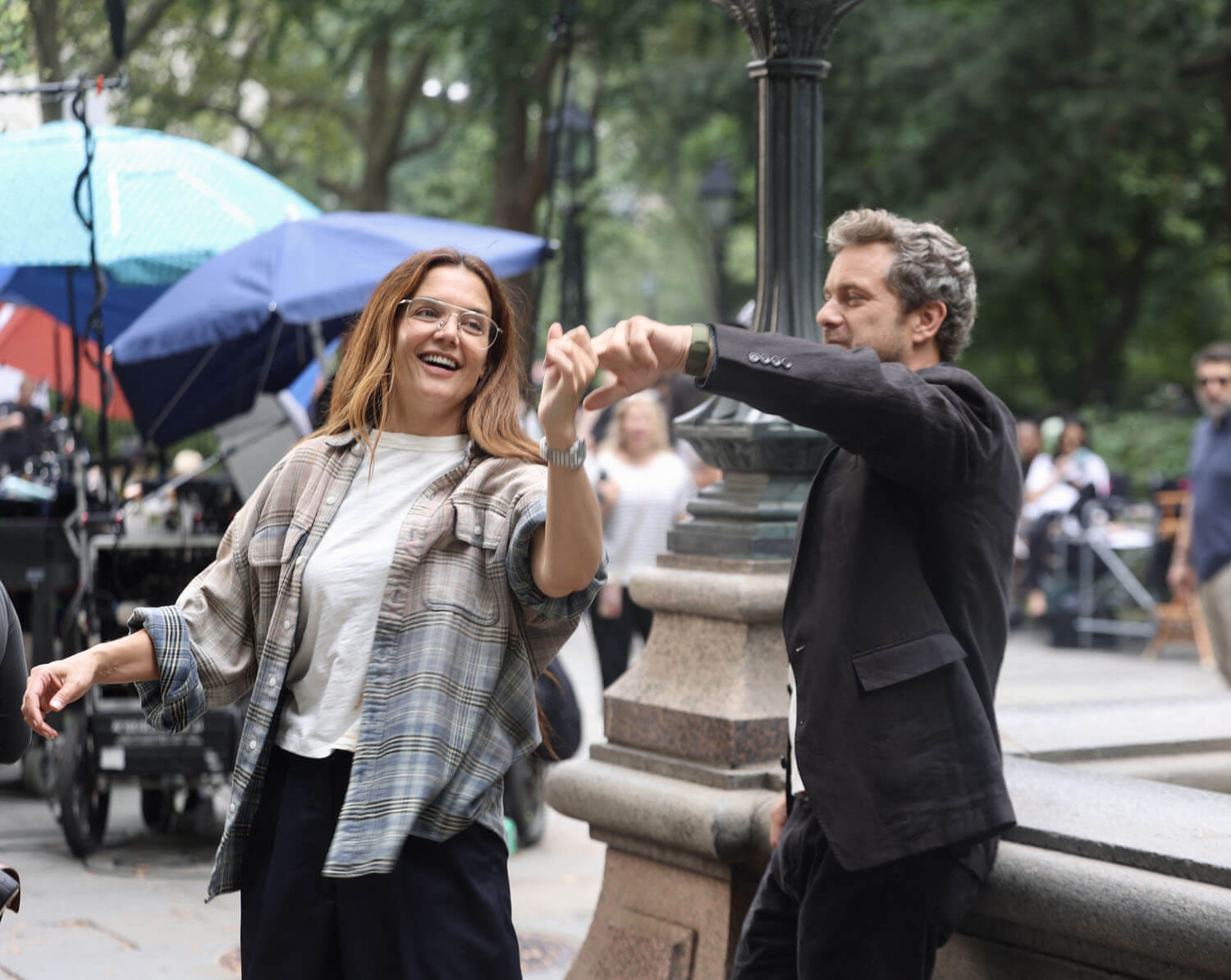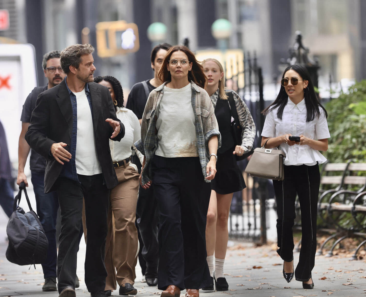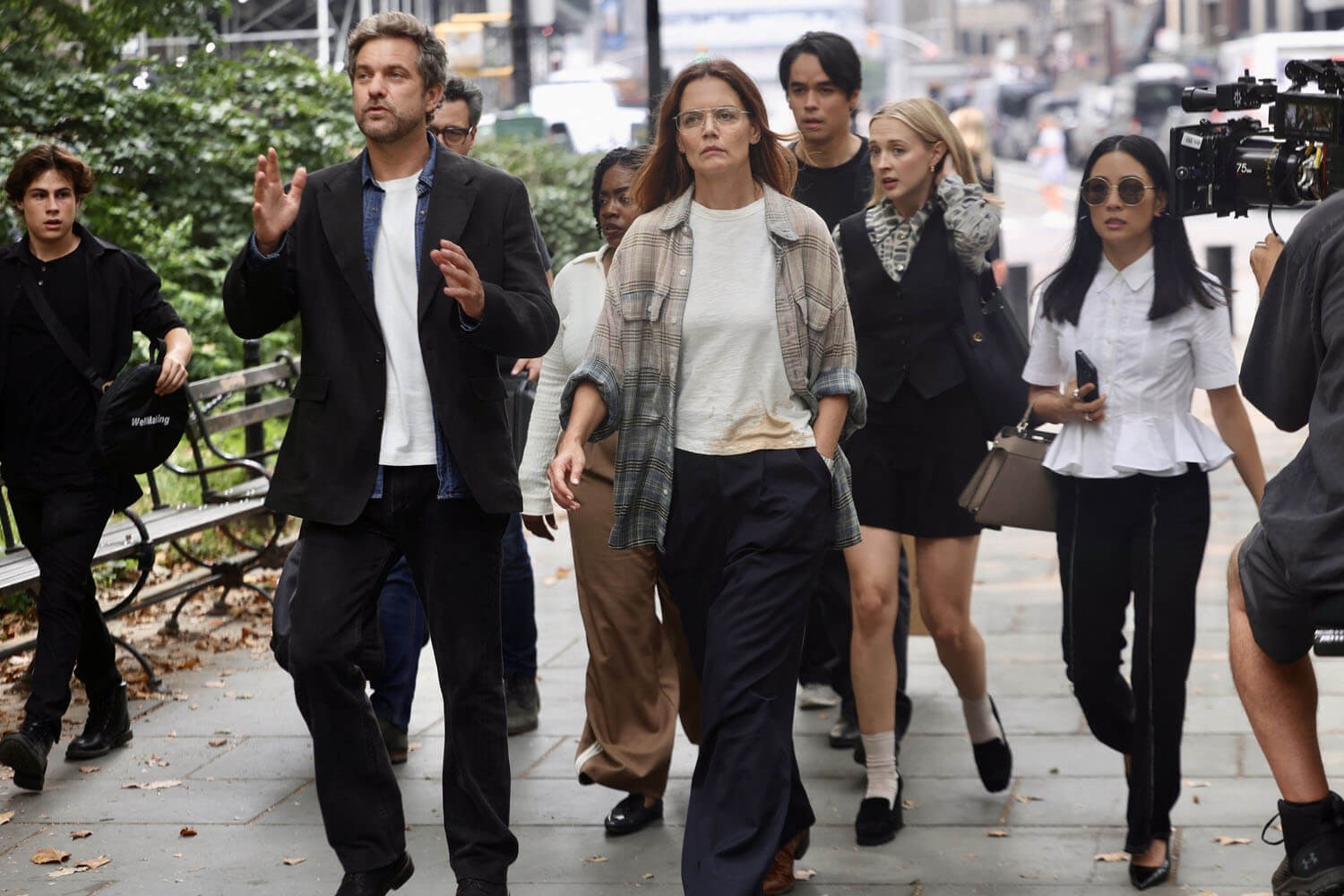The pap shots almost every day from the set of Katie Holmes’s Happy Hours, in which she’s directing and co-starring with Joshua Jackson, make it seem like this film is entirely exteriors. Here are some more pictures of Katie and Josh in a scene with Constance Wu the other day.