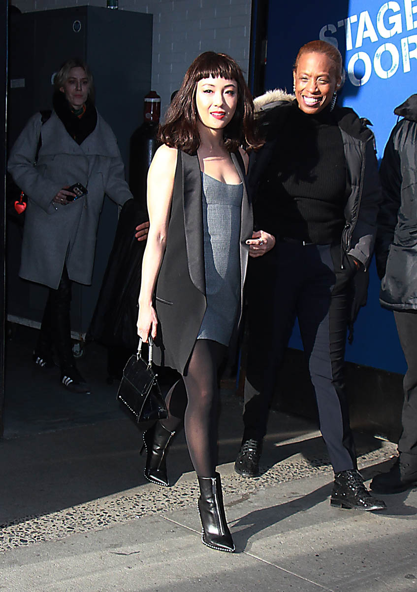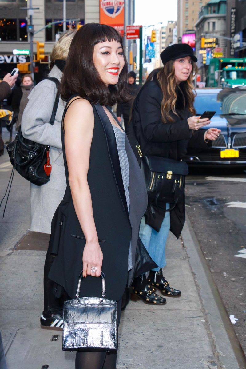 Constance Wu was in New York yesterday promoting Fresh Off The Boat and, the photo agency caption says, Crazy Rich Asians. They’re starting to do early press for the movie. Kevin Kwan, the author of the book series, posted this shot on Instagram from the end of February with several members of the cast, including Constance: