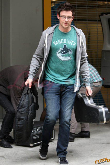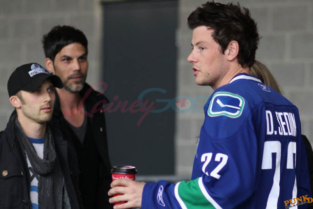 Cory Monteith has some down time now that production on Season 2 of Glee is complete. There's a tour this summer but before that, he's back at home in Vancouver, jamming with his band Bonnie Dune, and hitting up the Canucks game last night, always in Canucks gear, cheering on the home side to a victory in Game 1 of the Western Conference finals. Henrik Sedin finally woke up after a few days off. Jacek noticed he seemed to be labouring, one leg in particular, during the series against Nashville. Hopefully that's been taken care of.