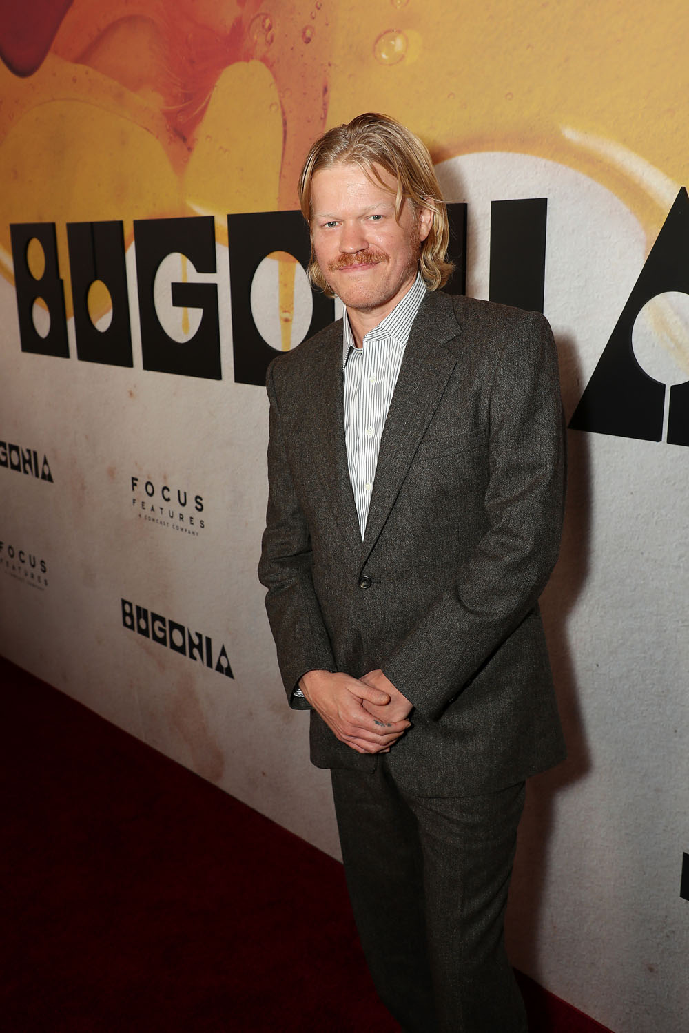 Bugonia premiered in NYC last night. In the film, Jesse plays a conspiracy theorist who kidnaps Emma, a CEO, because he and his partner think she’s an alien. So conspiracy theories came up on the red carpet. Apparently this is Jesse’s latest: