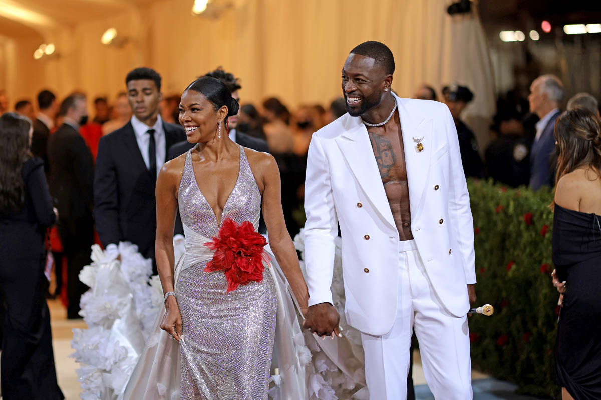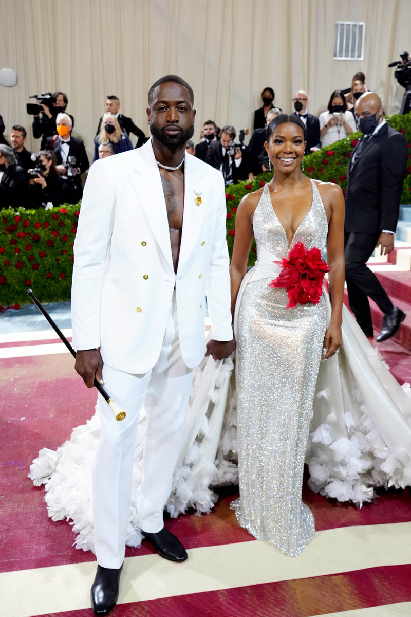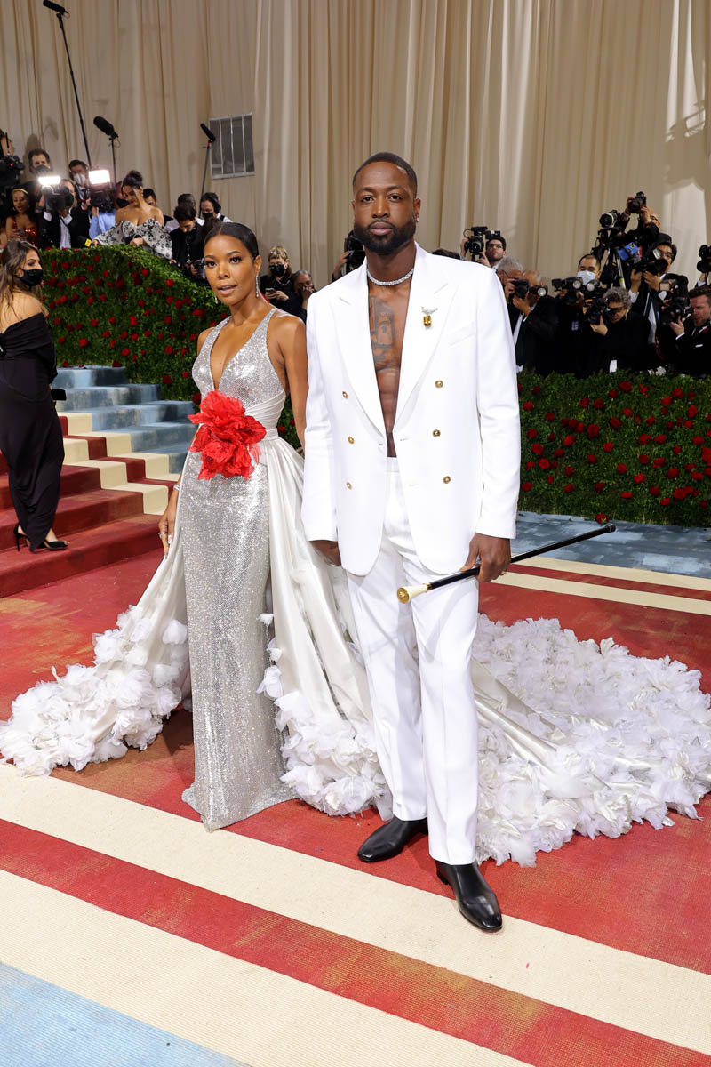 Next to Gabrielle Union and Dwyane Wade. Gabrielle also wore Versace – Versace may have served the most flex last night in my opinion – a breathtaking silver and white look that she said took months to put together and with red accessories attached to the back of her hair to represent the blood spilled during the Gilded Age, by the Black Americans and other people of colour who made the lifestyles of the elite class possible.