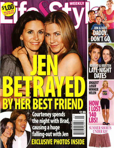 See now this is a lie that bears fruit. Because all members of the MiniVan fantasise about the day when Brad dumps the goddess to return to the ordinary girl, spawning a new war featuring two more evenly matched adversaries: Angelina Jolie vs Courteney Cox.