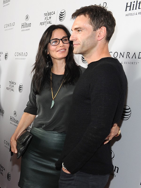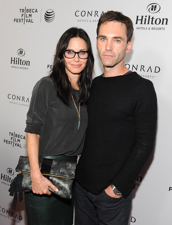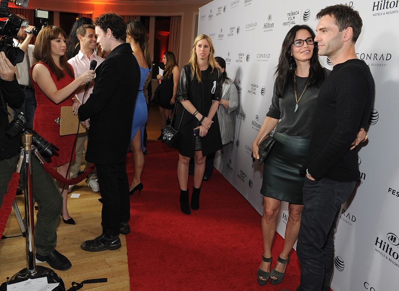 Courteney Cox walked the carpet at the Tribeca Film Festival in LA yesterday with boyfriend Johnny McDaid. The two have made no attempt to hide their relationship since they started dating but this is the first official event they’ve attended together. Photo Assumption says both seem relaxed. Like, there required no complicated choreography, no angst-ing. And, to be fair, or not fair, it’s because Courteney Cox is not Jennifer Aniston – both in celebrity rank and approach to being a celebrity.