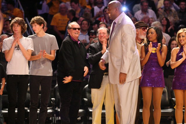 The Lakers opened against the Clippers last night and as usual Staples Centre was full of stars including Charlize Theron and Stuart Townsend all loved up courtside, a Posh-less Becks still growing that sh-t all over his face, Sacha Baron Cohen on a rare evening in front of cameras, and the ubiquitous Jack Nicholson, unofficial mascot for the Lakers and, some would argue (with the exception of last year), the Oscars.