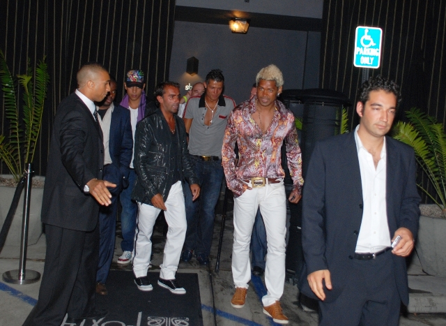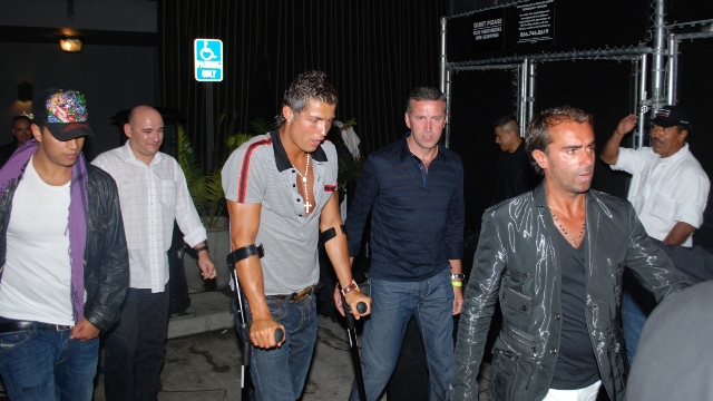 But definitely mind his posse. Cristiano Ronaldo’s posse leaving Foxtail last night. Holy f&cking EuroCheese! Look at that blonde man. In the white pants. And the print shirt.