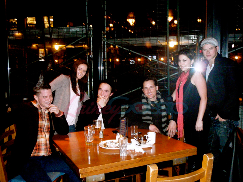In Vancouver in March for costume, makeup, and screen tests – Jackson Rathbone, Robert Pattinson, Peter Facinelli, and Kellan Lutz out together on the town…