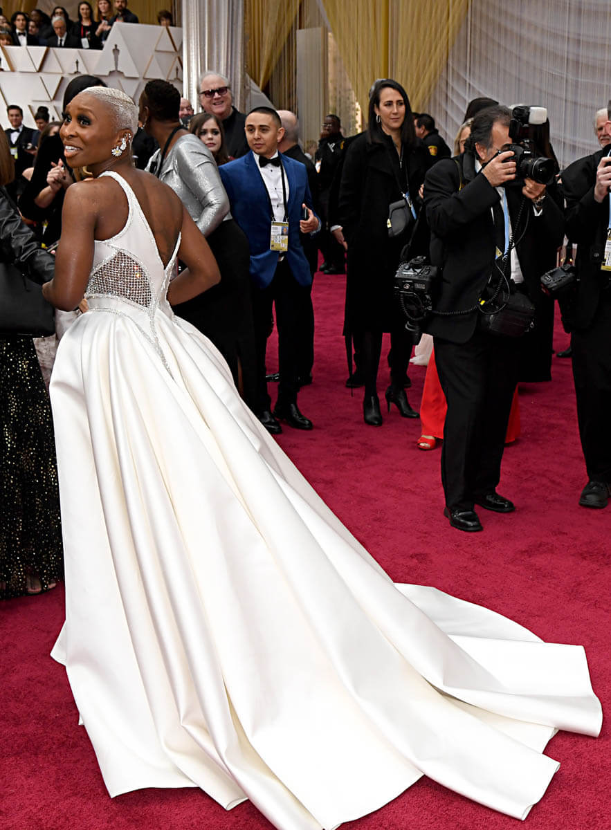 Her red carpet Versace was unmistakably Versace. This is a classic Versace bust line, we’ve been seeing it for years. And yet Cynthia made it feel fresh, like a whole new take on what was once a tired design. In part, it was the fullness of the skirt. In the past, Versace has sent this look out in a variety of shades of citrus fitting tight to the body. Seeing it billow voluminously from her waist was a really great start to the carpet, especially since a lot of the fashion this award season was kind of…underwhelming? And it can be the other way around, right? We start off strong at the Golden Globes and then by the time we get to the Oscars, where the red carpet can be a lot more conservative, all the good sh-t has been used up.