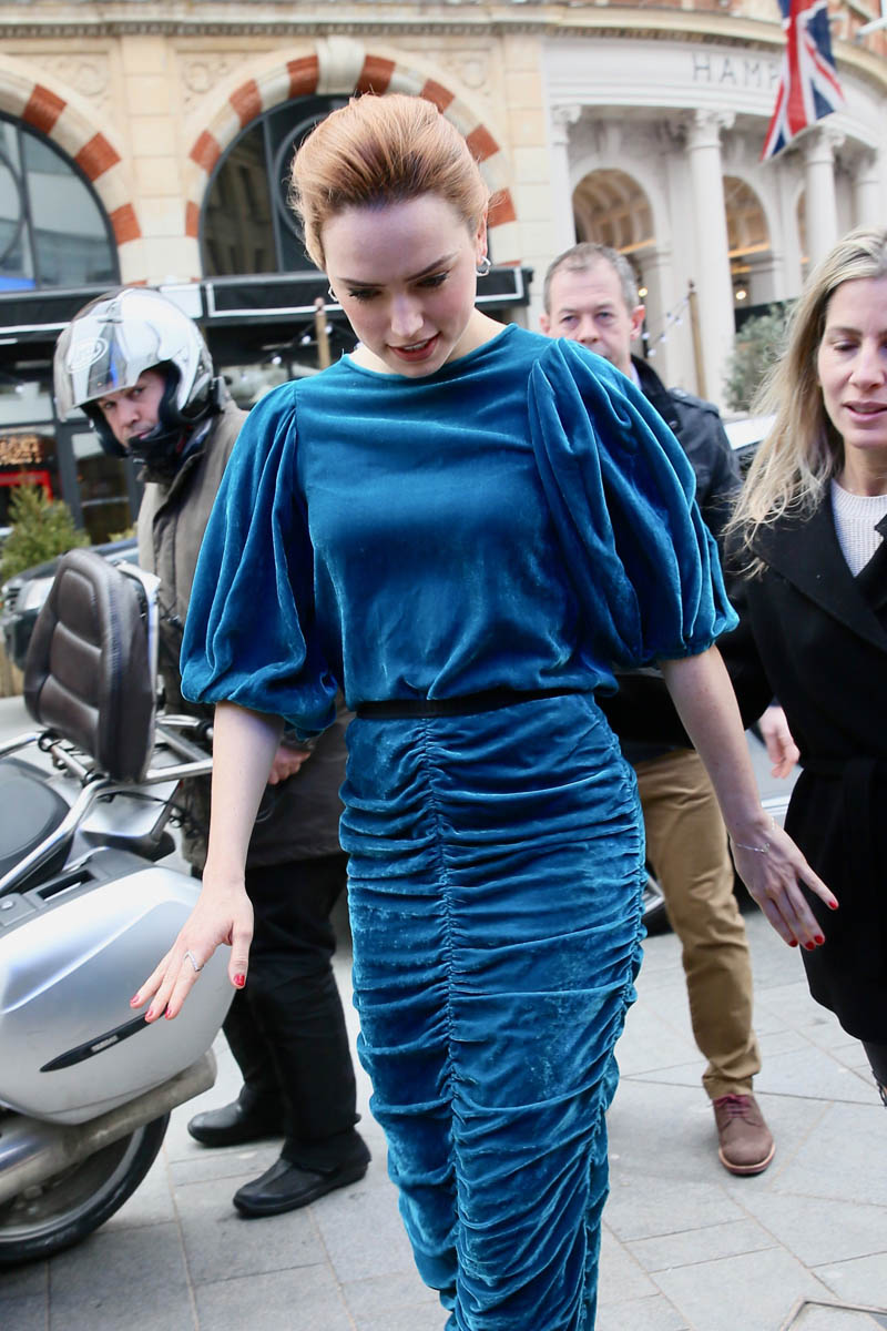 This might be one of the best colours of velvet, right? It just looks so rich, luxurious, and she’s wearing the sh-t out of this dress.