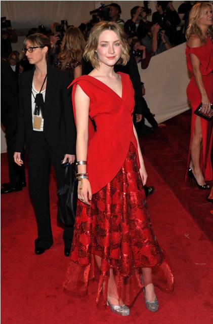 Saoirse Ronan is also 17. She wore Rodarte last night. A much more interesting (even though the shoe selection is, like, a major wtf), much less obsequious dress. I love that a dress can be obsequious or not. I love that it can tell you so much, especially in this case, about who is wearing it.
