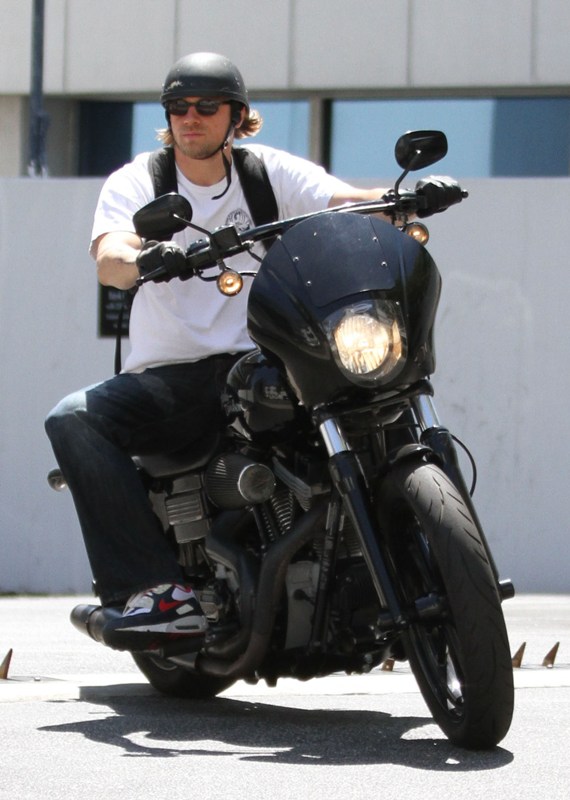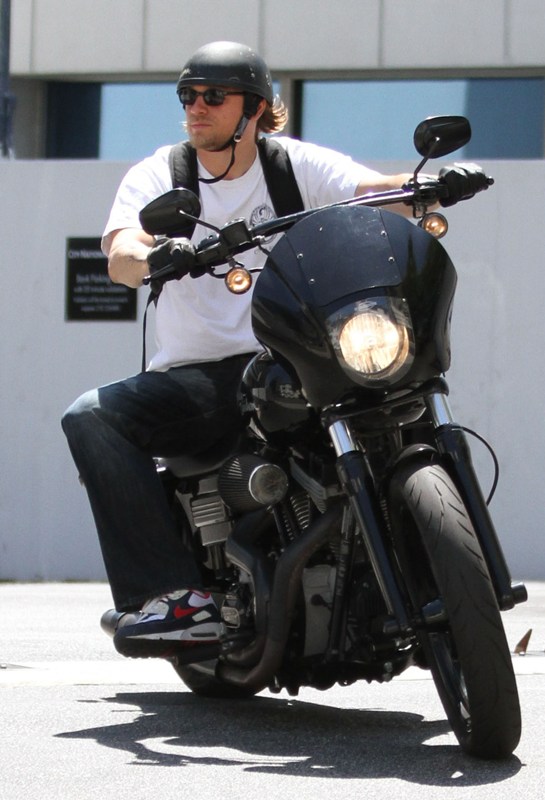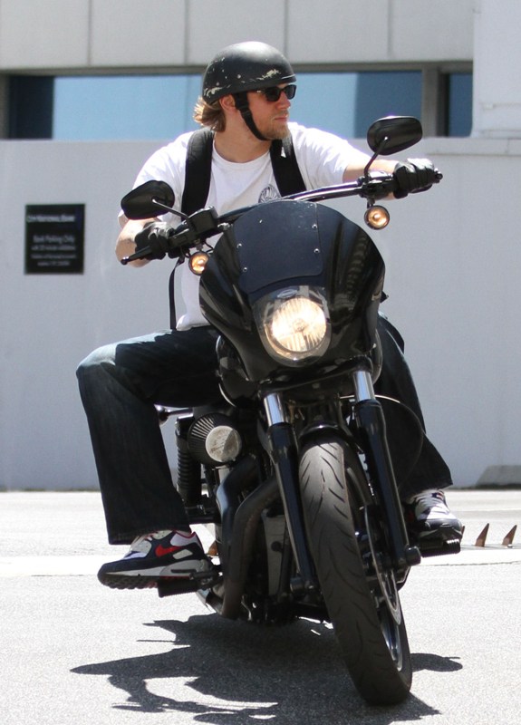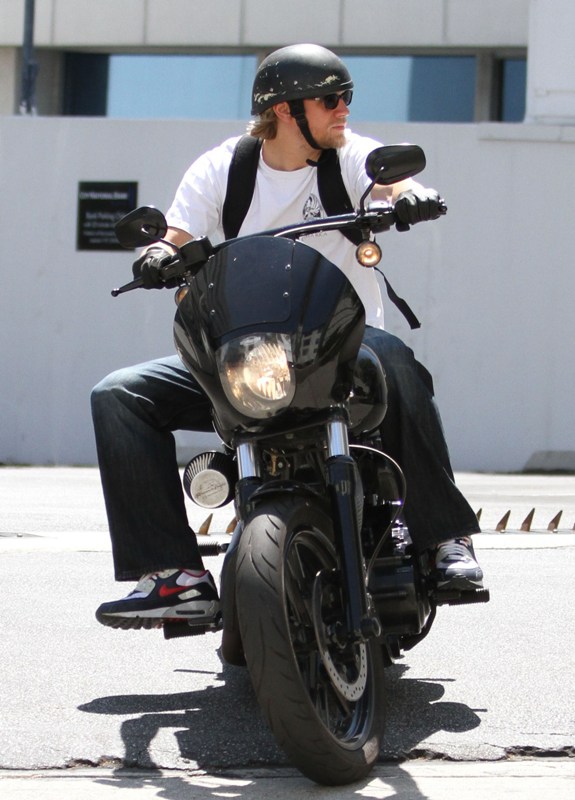 Attached – Dakota Johnson at the US Open last week and Charlie Hunnam on his bike on Friday.