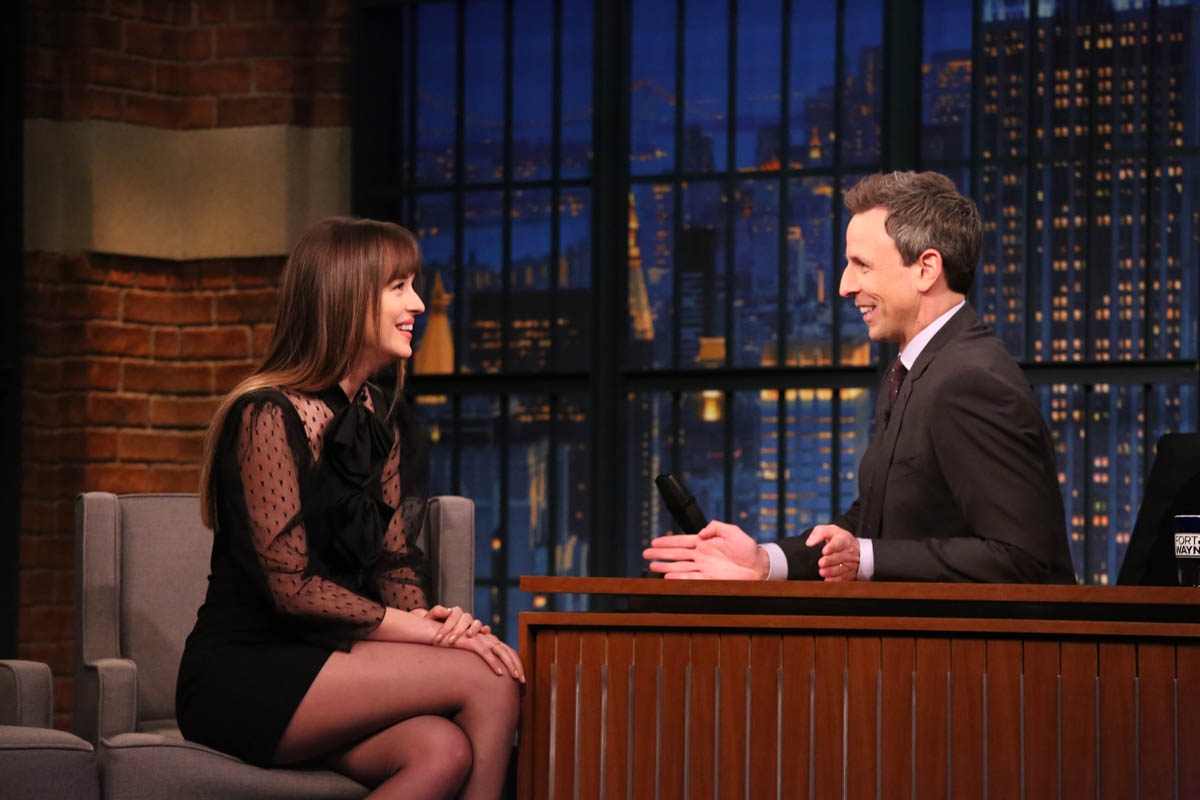 On Dakota’s side of the press tour, she was on The Tonight Show this week talking about skunks and as Lainey mentioned yesterday, her side-eyeing Angelina Jolie at the Globes.