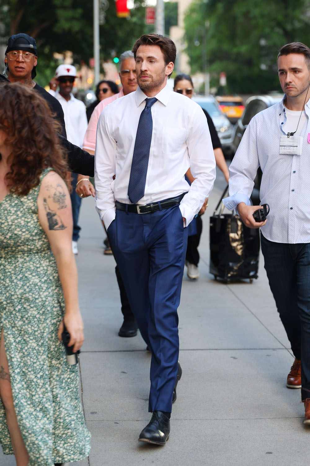 Dakota Johnson and Chris Evans continue work on Celine Song’s Materialists in New York, and I am highlighting these set photos mainly because it’s funny to me that every time Dakota pops up on set, someone asks Maria to source her wardrobe, including in today's As Seen On Social Media post. She’s had great style around this movie!
