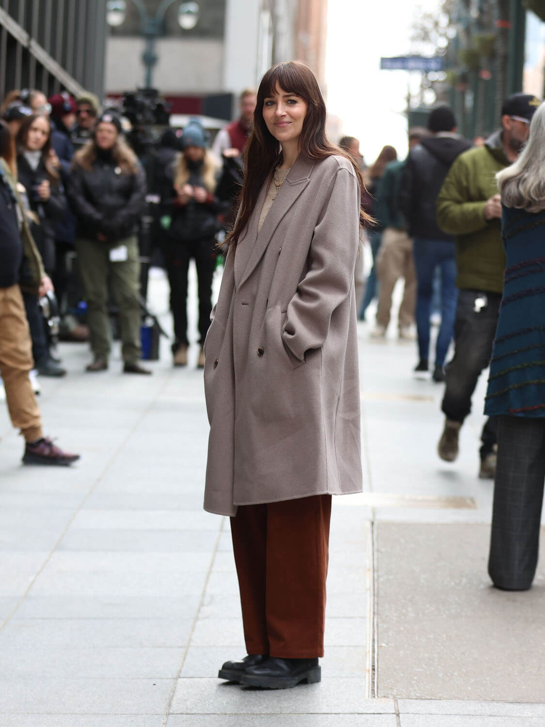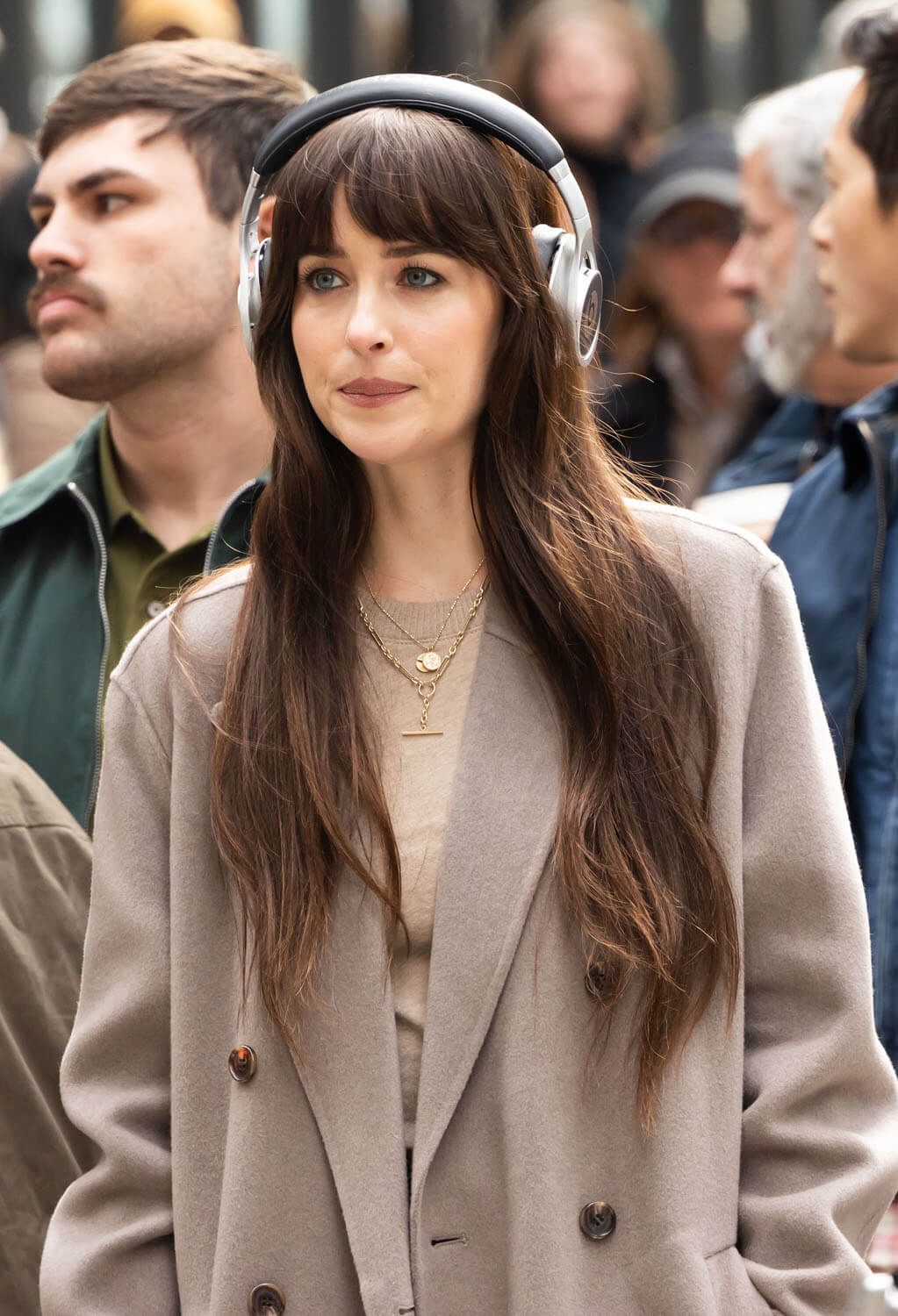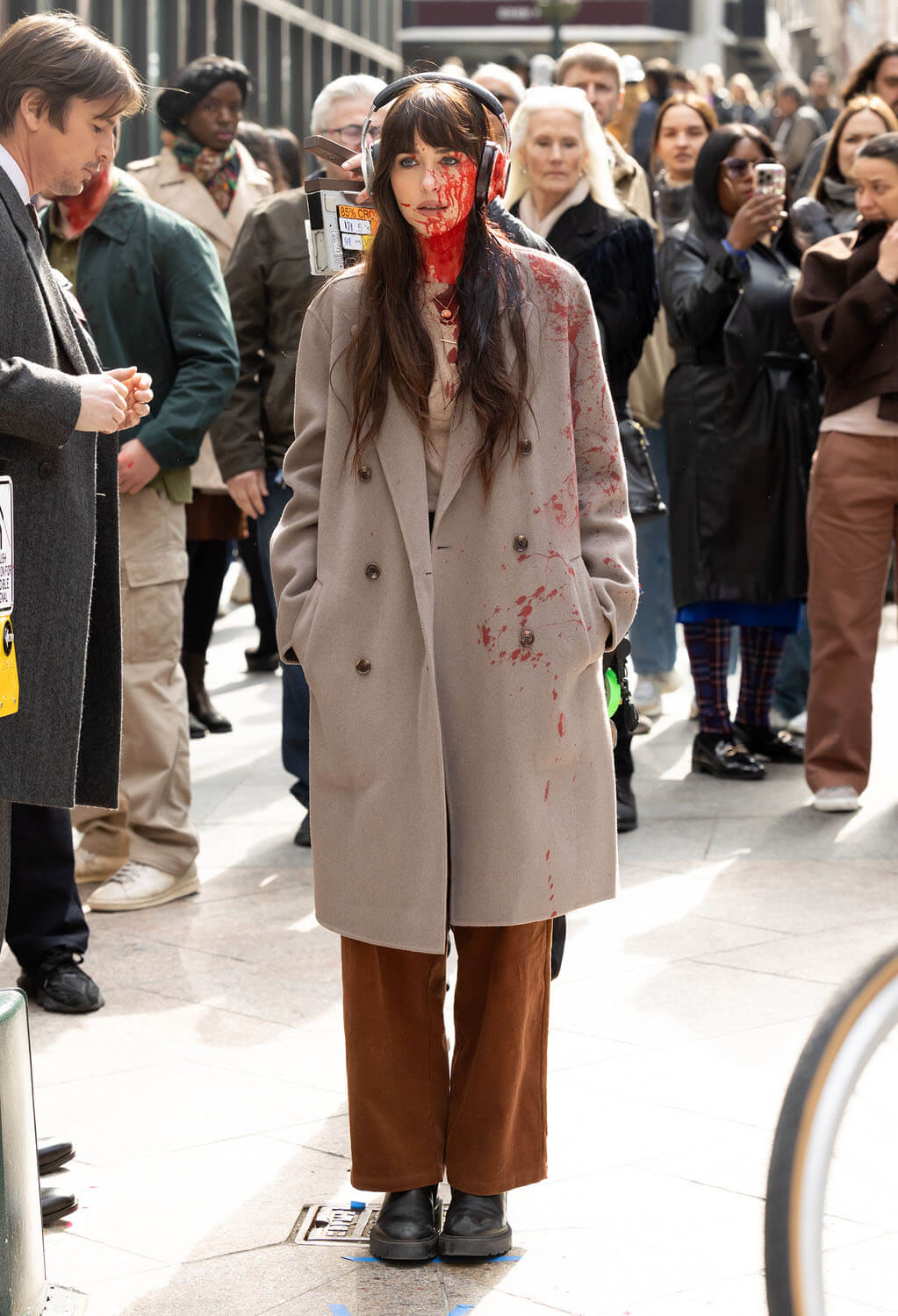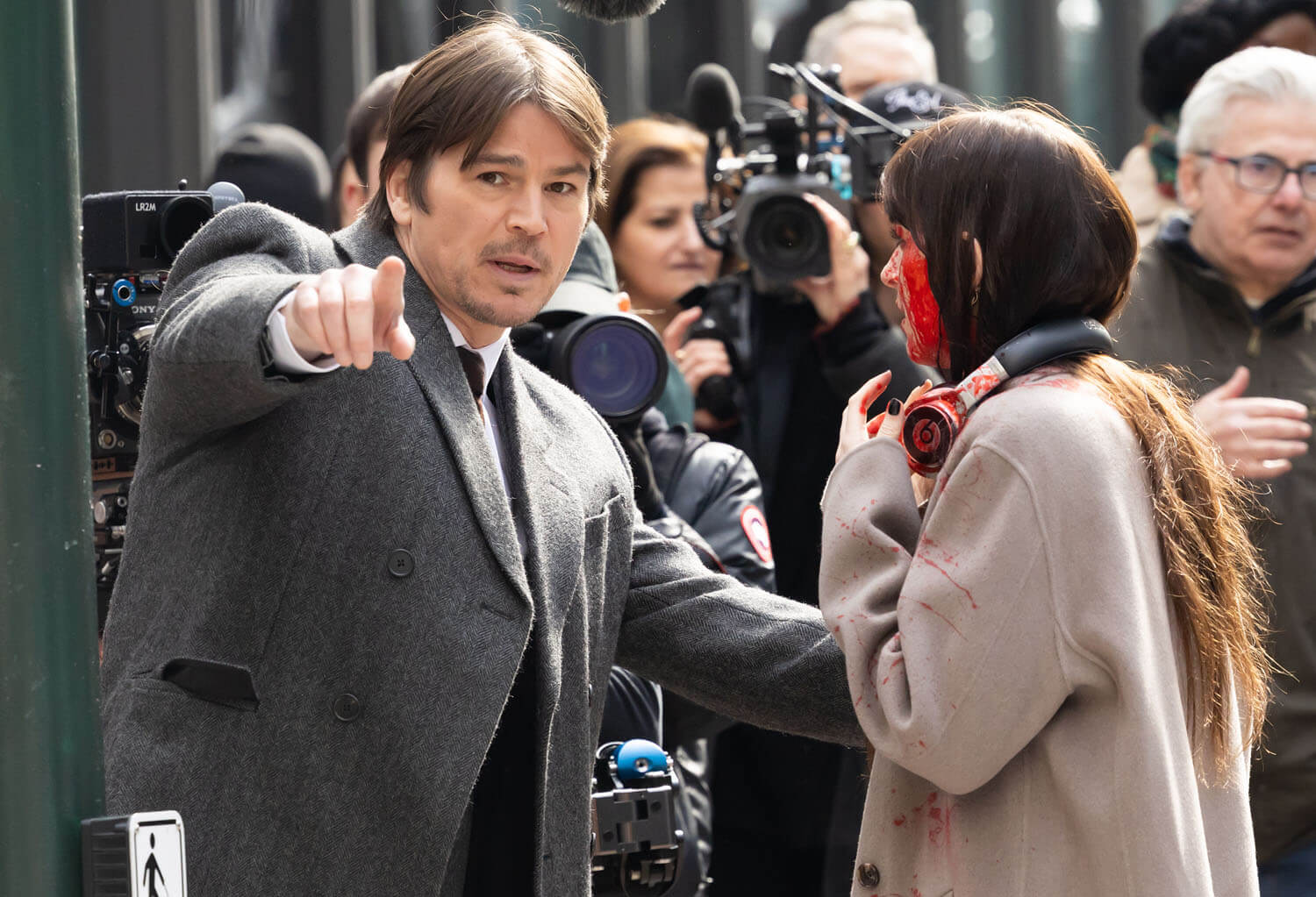 A couple weeks ago, Lainey wrote about Anne Hathaway filming Verity, the newest Colleen Hoover adaptation being thrust upon us, noting how “glamorous and elegant” Annie looks in character. Well, Dakota Johnson was seen filming a scene for Verity, and she looks distinctly less glamorous and elegant, mainly because of all the blood. It’s some kind of accident scene and Dakota’s character is sprayed with blood. Josh Hartnett’s character is there, too, whisking her away from the action. I don’t read Colleen Hoover books, and this is not making me want to, but I am super into a movie that uses real blood effects. On-screen blood is another casualty of CGI, and I like to see good old fashioned dyed corn syrup put to work.