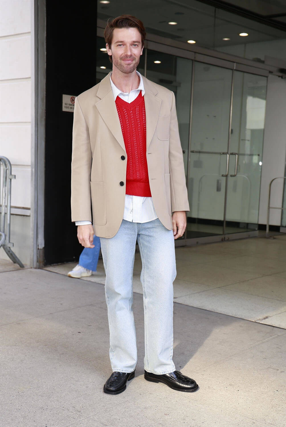 Patrick Schwarzenegger, on the other hand… I’m sure someone will tell me this is the height of quiet luxury and old money style or whatever but look. Those black loafers, with THAT tan blazer, it just doesn’t work. Either the jacket needs to be a darker shade of brown—you can mix black and brown, they just have to make sense together—or the loafers should be brown, or he could just wear a pair of kicks. I feel like sneakers would be the real quiet luxury here, some old pair that he’s clearly worn forever paired with his natty blazer and sweater vest.