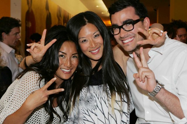 And of course there’s Dan Levy, host of MTV Live every night at 6pm and The Aftershow during The Hills – a show so well done and so engaging and so popular, Lauren and Audrina and Whitney made the trip to Toronto a few weeks ago to promote the season finale. One day this boy will be the new ‘Nessa. But bigger and better…trust. In the meantime, here’s Dan with Tanya Kim and me rockin’ the Hello Kitty pose.