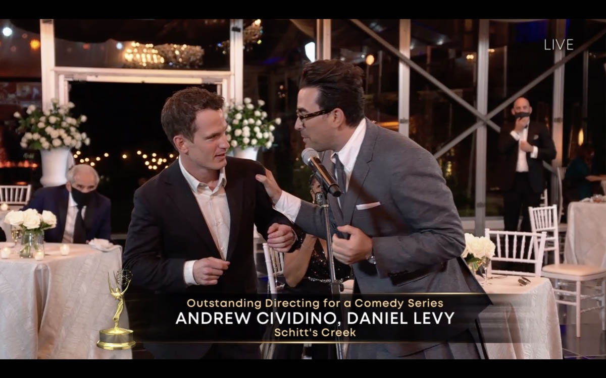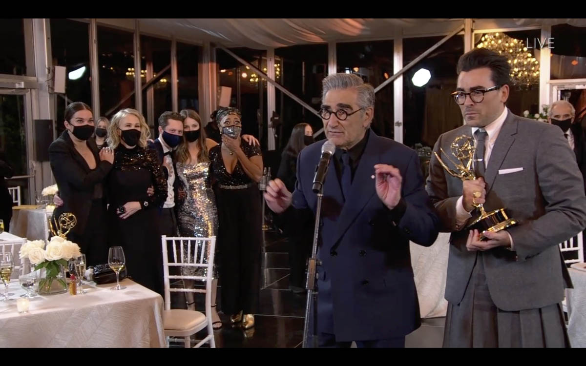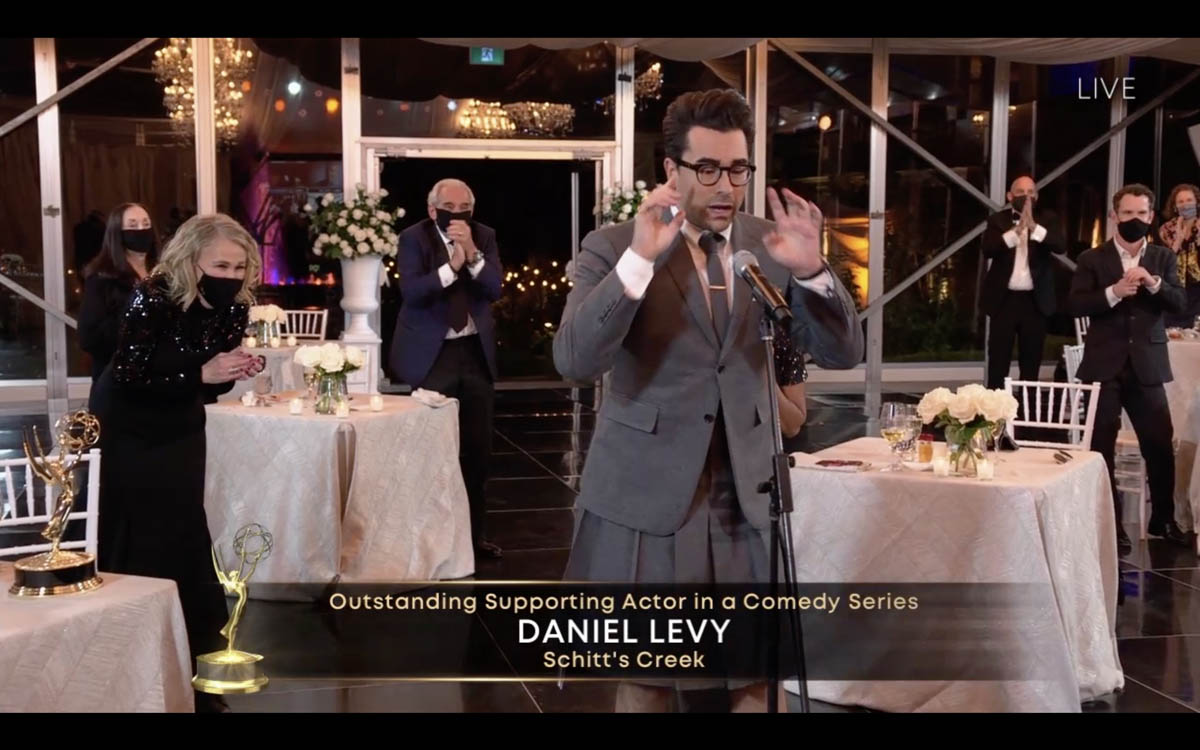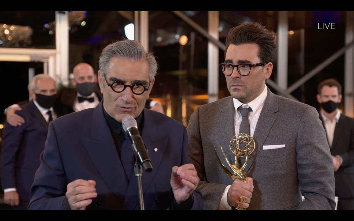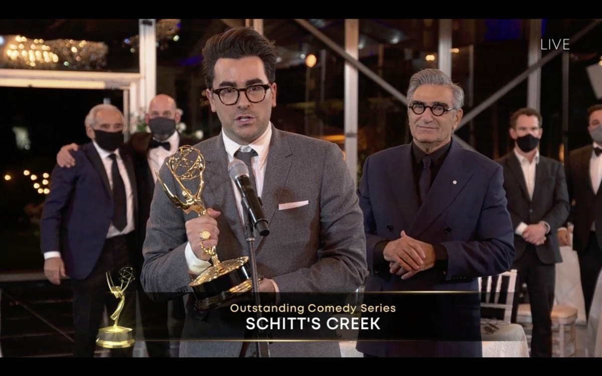 Because even though it would have been so great if Schitt’s Creek could have been celebrated on stage last night, at the Emmys, the way we used to watch the Emmys, the fact that they were all in Toronto, in Canada, where the show was filmed, where the crew is based, was (as Dan acknowledged during one of his many, many acceptance speeches) special in its own way. Today their Emmys are here, in the place where it all began.