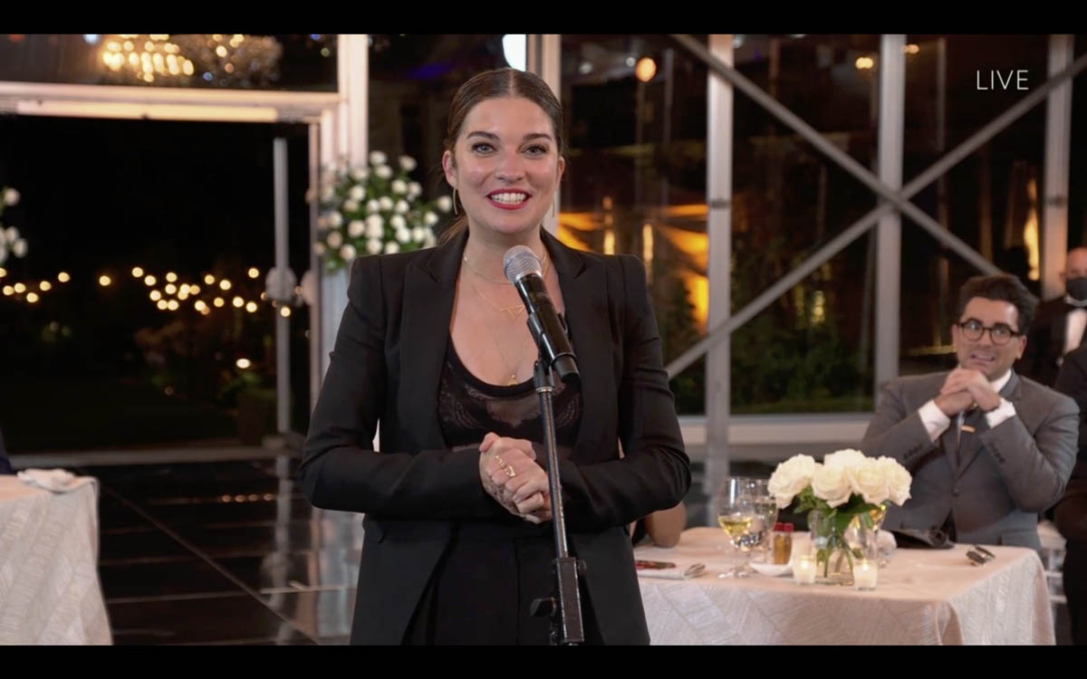 Finally, Sarah Levy, wasn't with the Schitt’s Team last night so her family FaceTimed her: