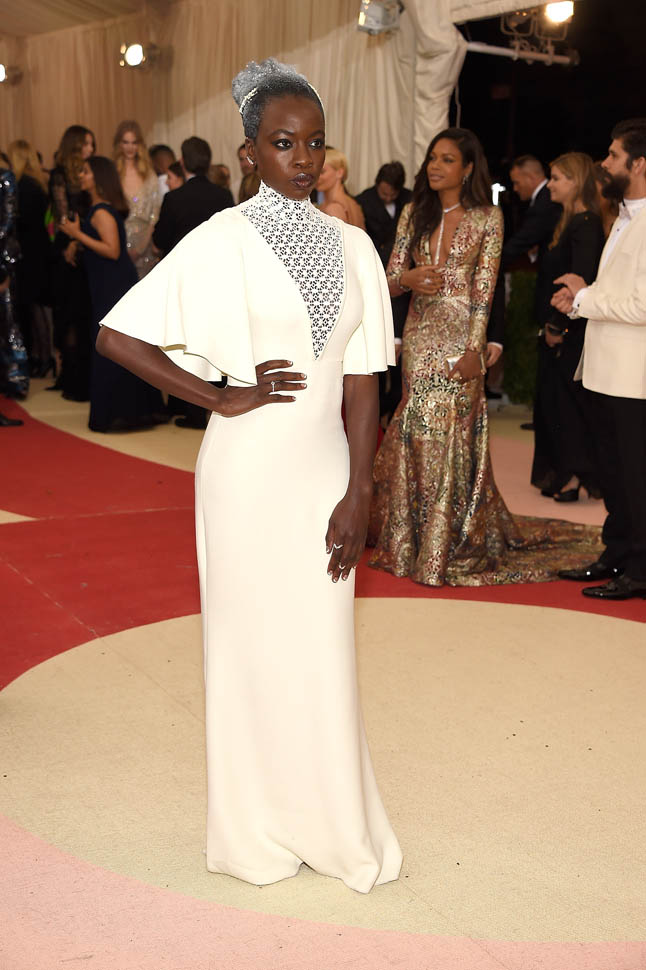 This is the type of work and buzz that Anna is rewarding with a MET invitation. It may sound like a risk, but she's helping the show receive the visibility it deserves before the Tony news was even announced. While outlets are able to report about Danai's success story, they're also able to use those photos of her in the Giambattista Valli dress. Or of Lupita in Calvin Klein. Or even of newly-minted Tony nominee Michelle Williams in LV.