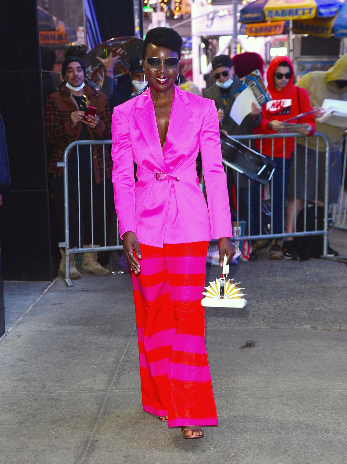 Danai Gurira was at Good Morning America this week carrying a really cute purse that, to me, looks like an open book. I don’t know if that’s what it’s supposed to be but that’s how I’m reading it (ha!) and I imagine, in addition to being a really funky accessory, it functions well too because you can put odd-shaped things in it? (Go Fug Yourself)