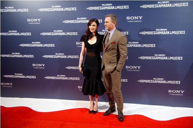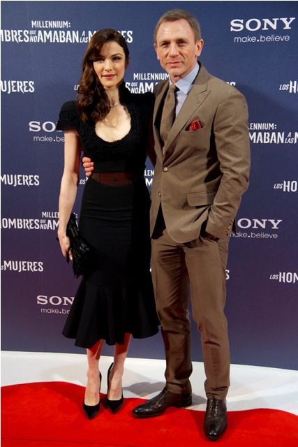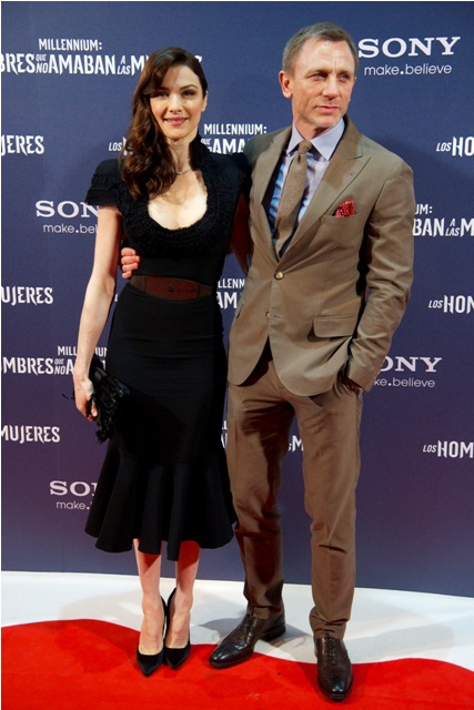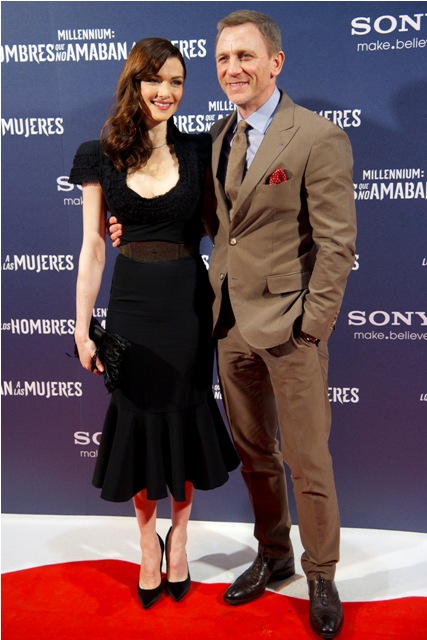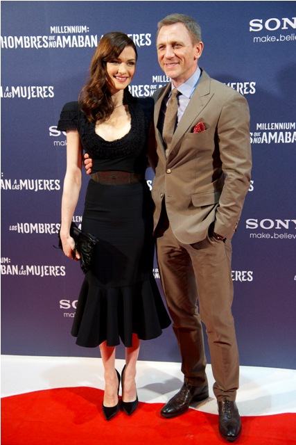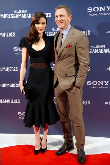 Here are Daniel Craig and Rachel Weisz, together on a carpet for the first time yesterday in Madrid for the Spanish premiere of The Girl With The Dragon Tattoo.