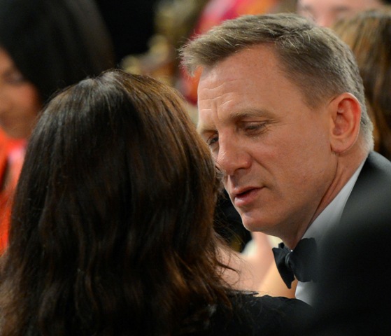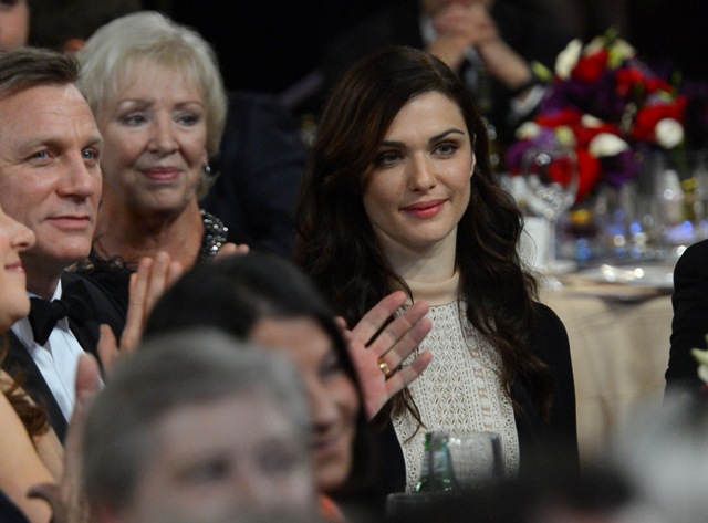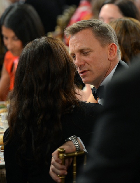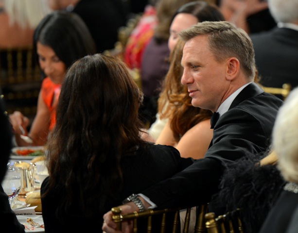 Daniel Craig was honoured last night at the BAFTA Los Angeles Brittania Awards. He walked the carpet alone but was seated with wife Rachel Weisz inside. And...I’m not sure they knew the photographer was taking shots from this angle. Bonus for us! Smoulder is a cheesy word but in this case, I think it applies. It’s SUPER hot the way he’s looking at her, right? And it is (hilariously) not hot the way she’s looking at her plate. Here’s your chance to suggest that she might be pregnant, not because of stupid unreliable bumpwatch but because of her nausea face.