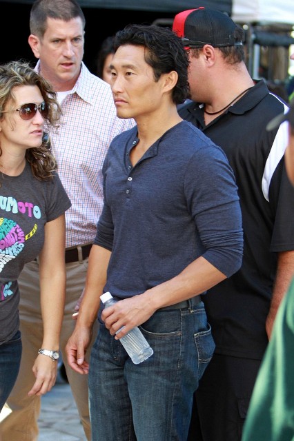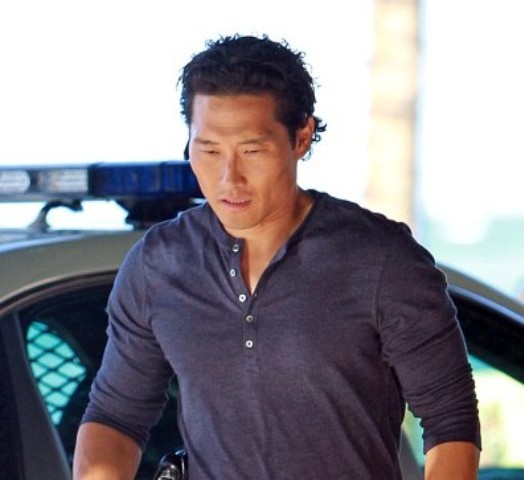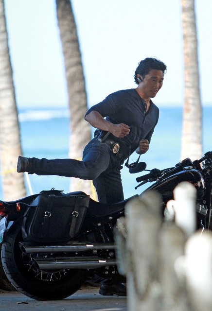 First – Daniel Dae Kim in Hawaii where he’s shooting Hawaii Five-O and, um, I like that shot of him getting off the bike. Unfortunately I only have 3 photos. That’s all there was available. So I’m zooming in on his face.