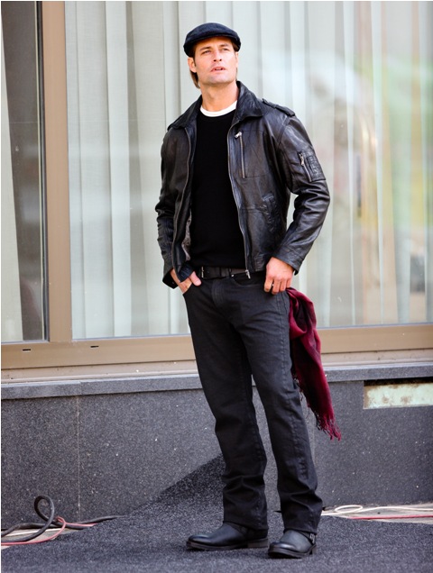 Then, Josh Holloway in Prague – he’s working with Tom Cruise now on MI:4. And that’s not Sawyer is it? No. That’s Josh in leather, shorter hair, and clean-shaven, and to tell you the truth, I prefer it. I prefer it extra a lot. You?
