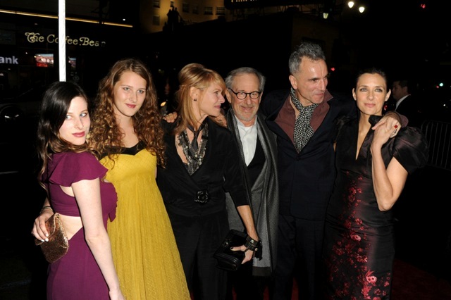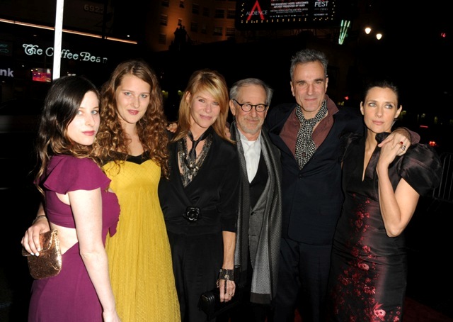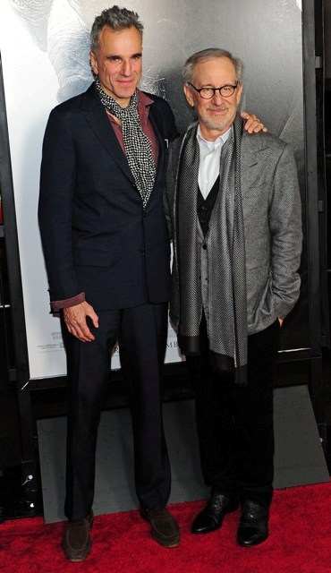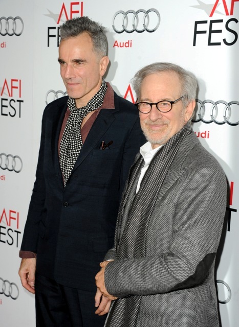 Here are Spielberg and DDL (with my girlcrush Rebecca Miller!) at the AFI screening of Lincoln last night. DDL’s last film was Nine. Do you remember Nine? It turns out his sh-t ISN’T gold-plated all the time! DDL was not nominated for Nine. Nine was a singing movie. Speaking of singing movies...