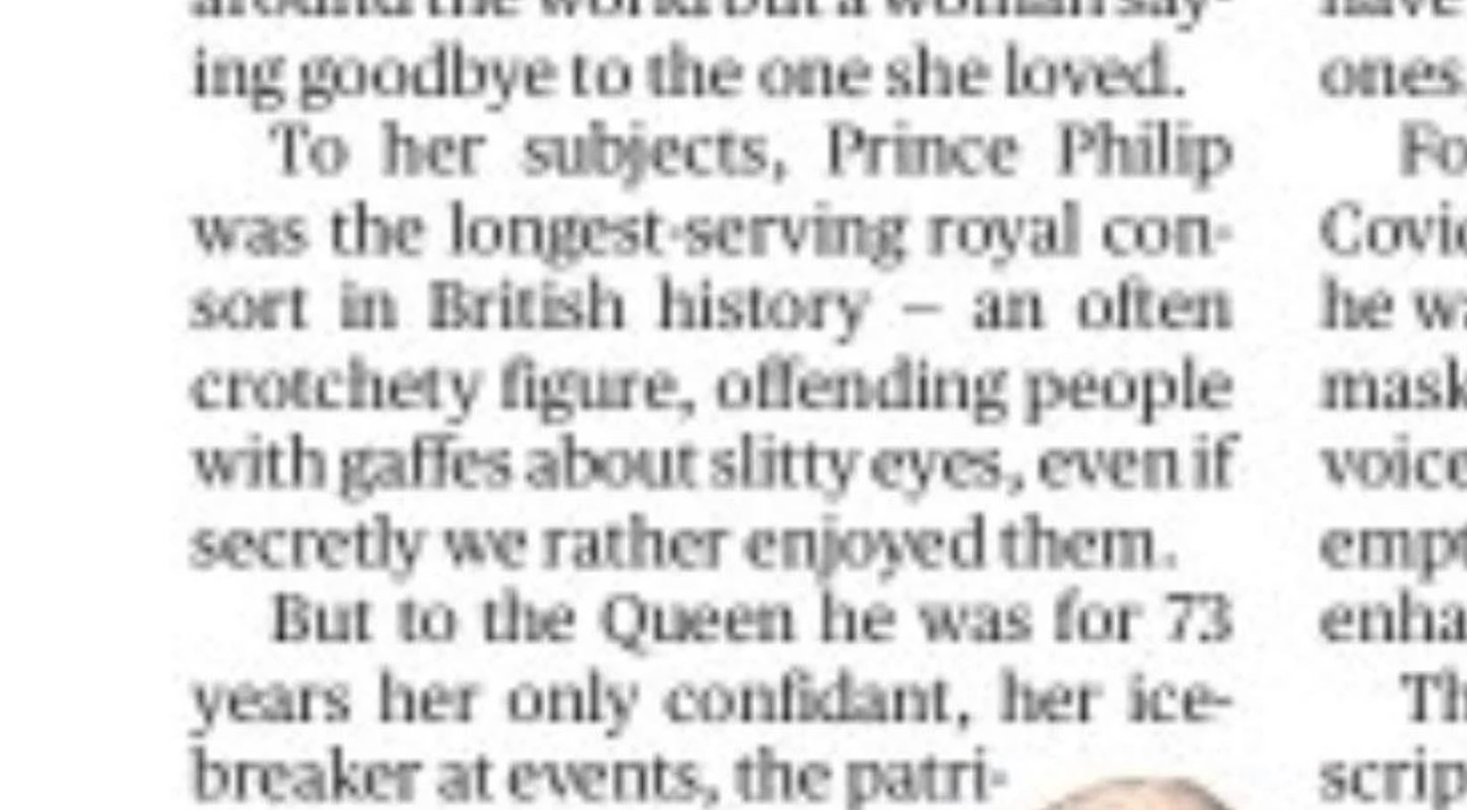 This was a reporter for the Sunday Times which… well…we were just here a week ago with the Sunday Times, weren’t we? Because the newspaper published an article about Prince Philip, calling his racist remark about Asians and “slitty eyes” a “gaffe”, and saying that people “secretly…rather enjoyed” it.