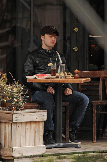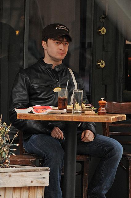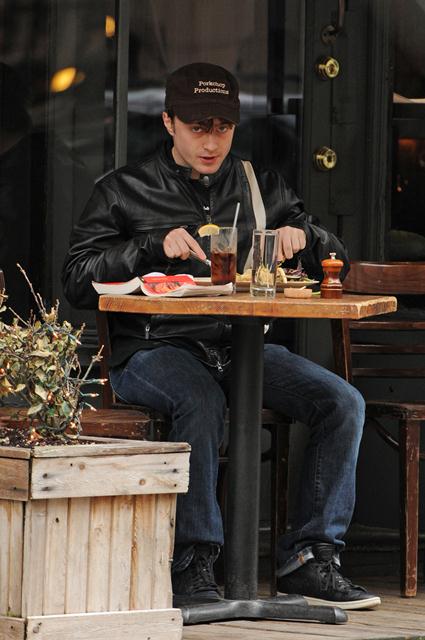 Anyway, this is Daniel Radcliffe in New York having a quiet meal alone at a place called Extra Virgin. As in olive oil?