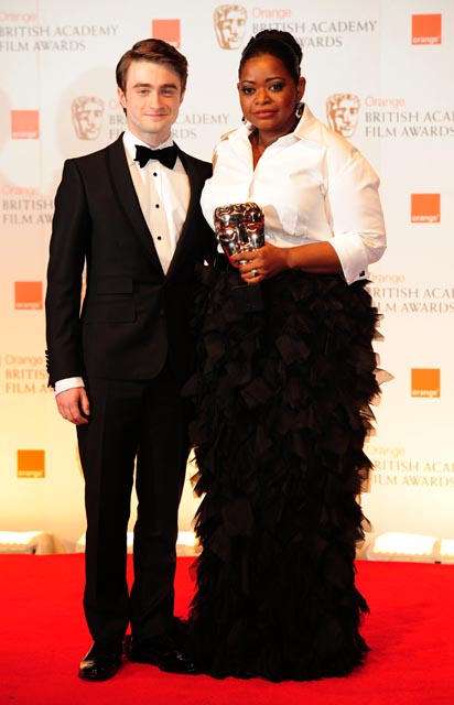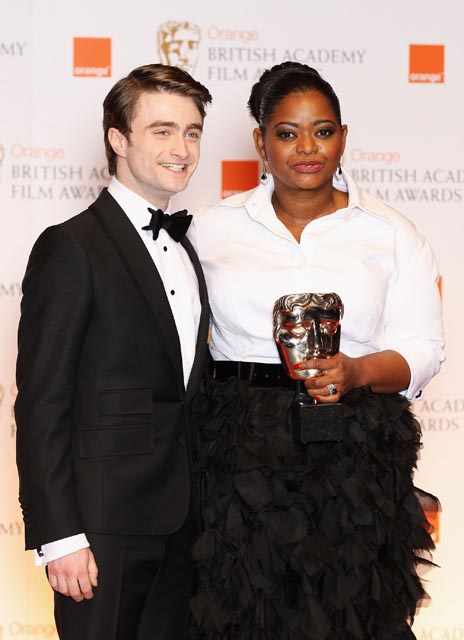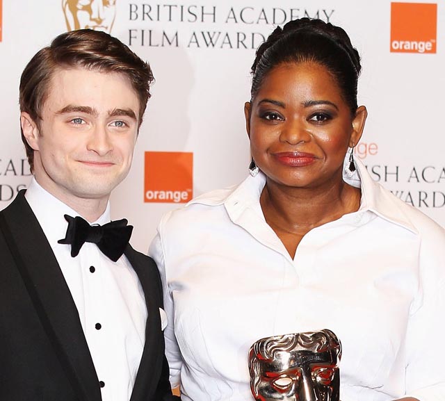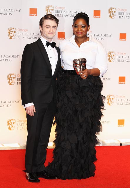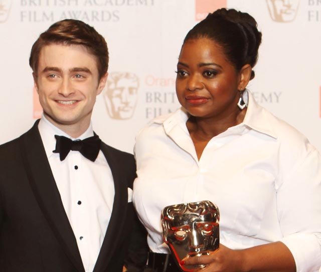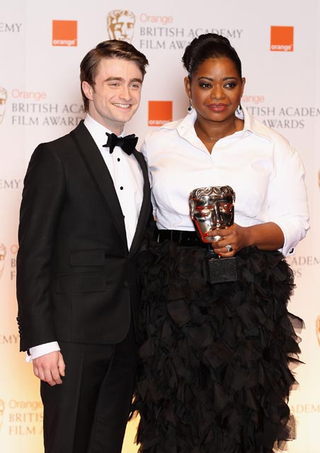 For reasons that don’t particularly become clear, Radcliffe presents the award for Best Supporting Actress -- I mean, it’s not like he won this one last year -- and calls Spencer’s name Then you get pictures like these, which just kill me because – I don’t know why, exactly. Is it because they’re exactly the same height in these pictures? Is it because their career-making films – both based on books - are so vastly, crazily different?