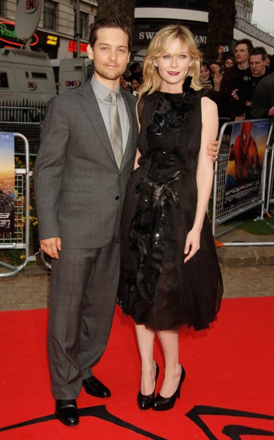 As for her tenuous relationship with Tobey Maguire… word is, they can barely stand next to each other. That when the press is out of earshot, they quickly go back to sneering at each other openly. Looks about right from this photo, non?