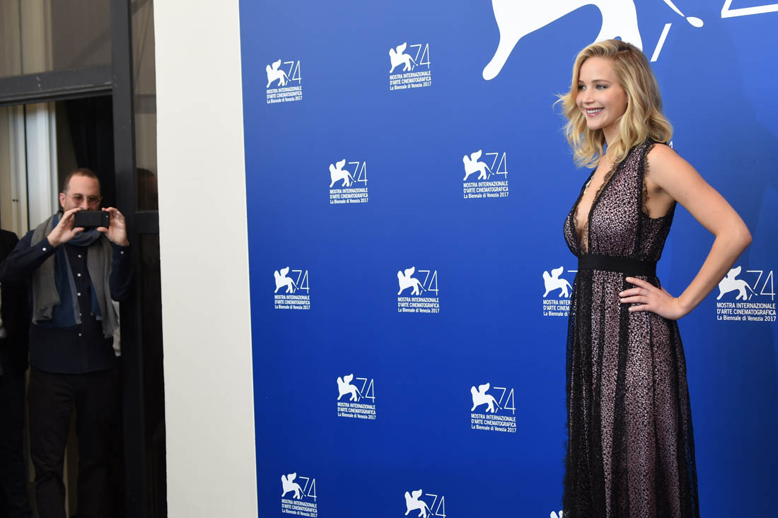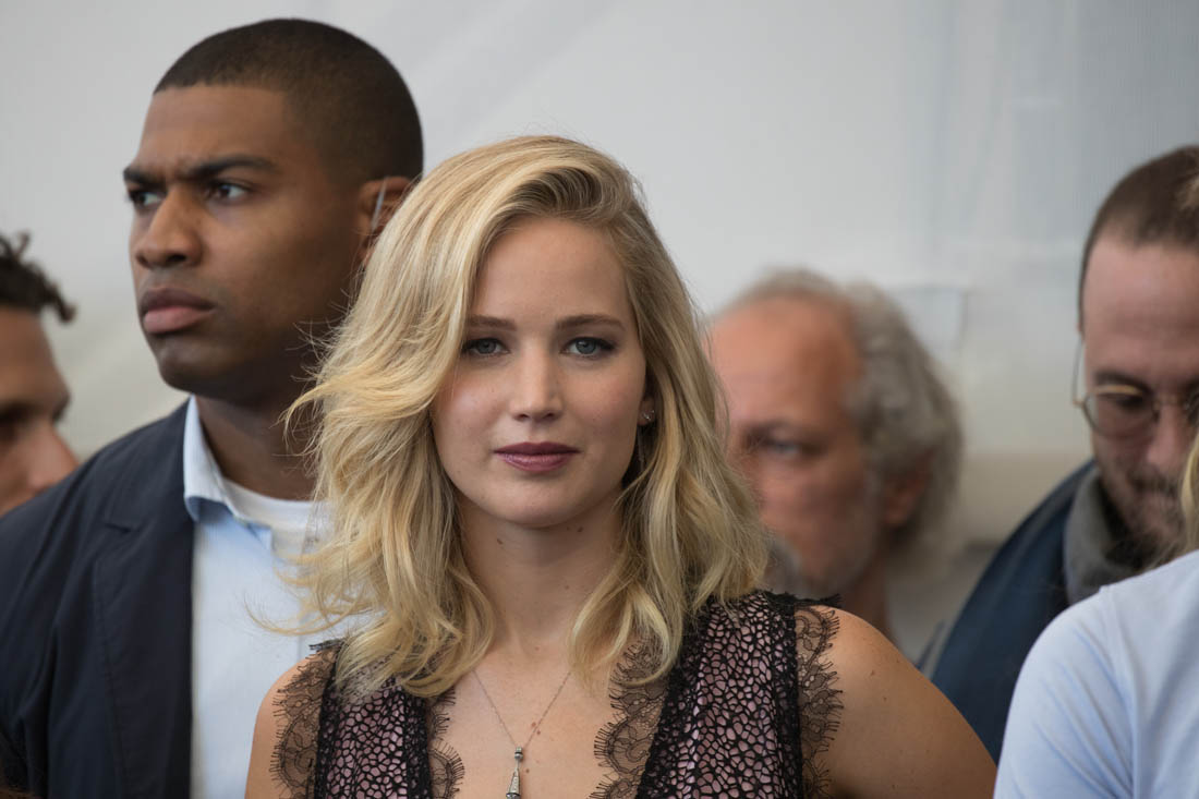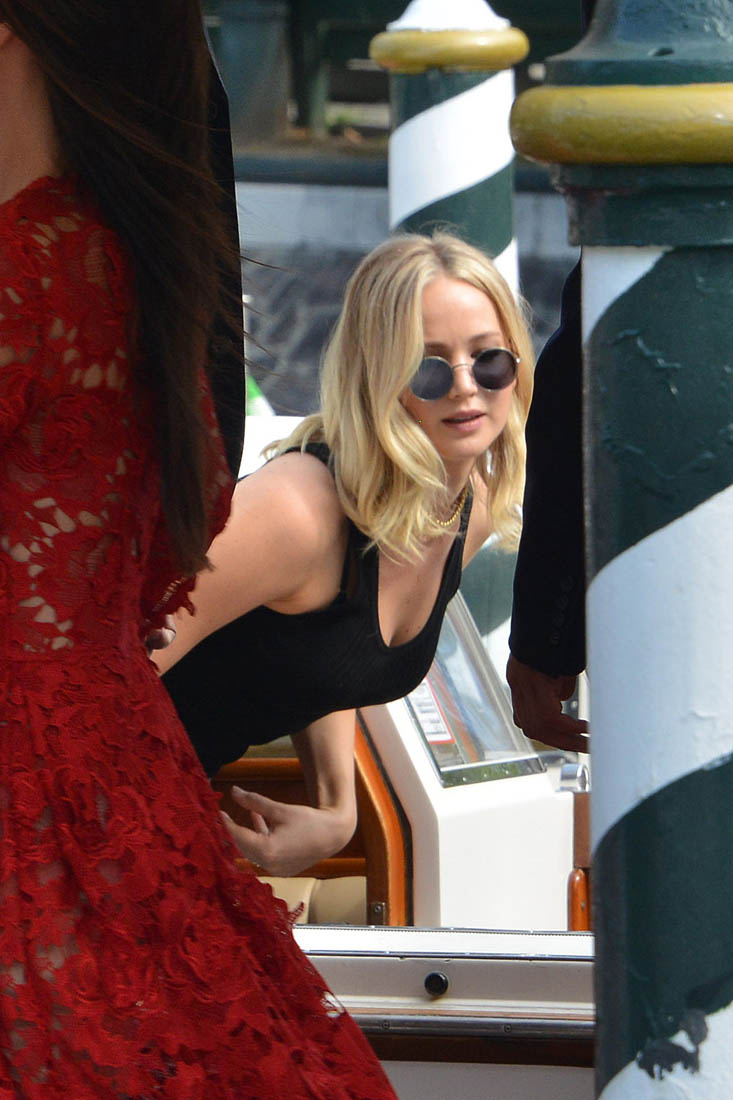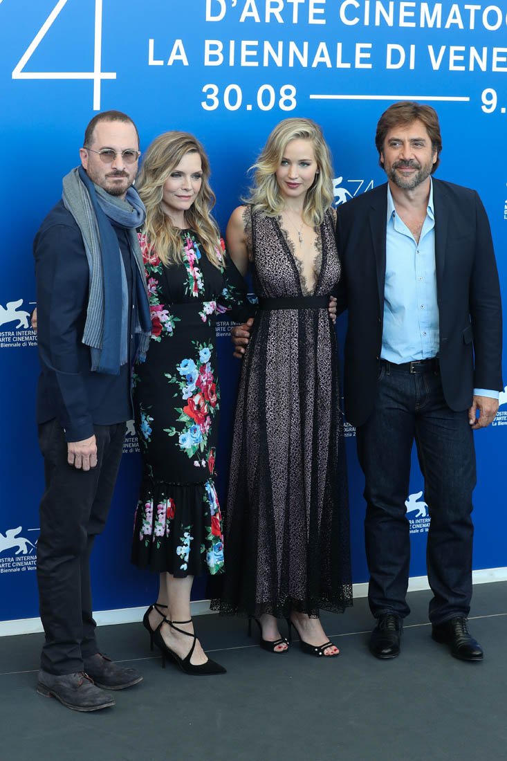 Sarah is seeing it a week from now here in Toronto. She’ll have more in her review. For now, here’s Darren, with the cast, at the photo call today. Darren and Jennifer Lawrence arrived together in Venice three days ago, careful not to be photographed in the same frame. As you can see, they did their best not to stand next to each other on the carpet. Maybe at the gala tonight we’ll get a shot of them side-by-side? I’m not all that hard up for it, actually. Michelle Pfeiffer is enough for me. Also? Darren’s got Johnny Depp’s scarf affliction.